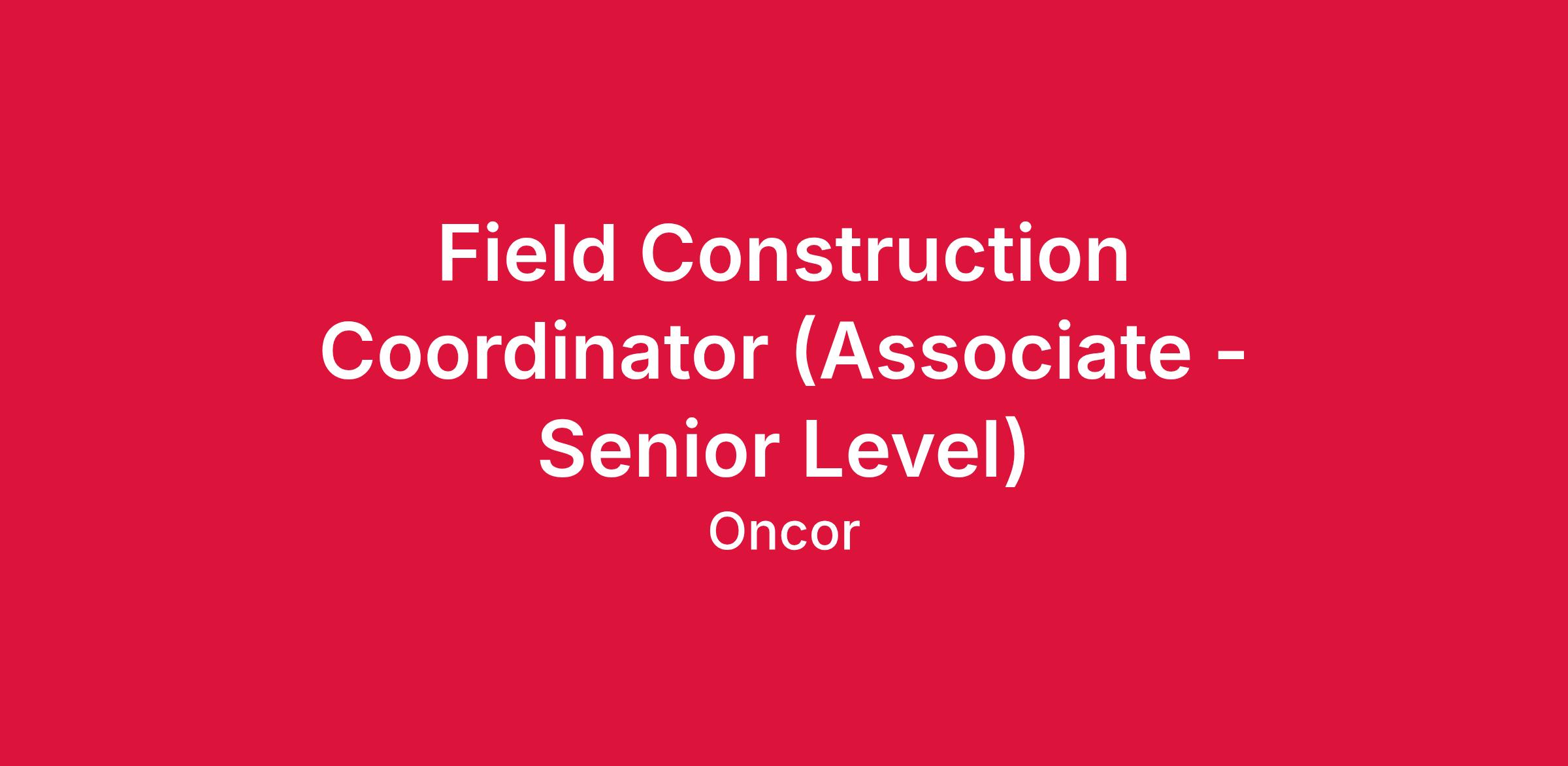 - Field Construction Coordinator Level Associate 1 - Associate 2: 3 or more years of directly related technical utility work experience is required