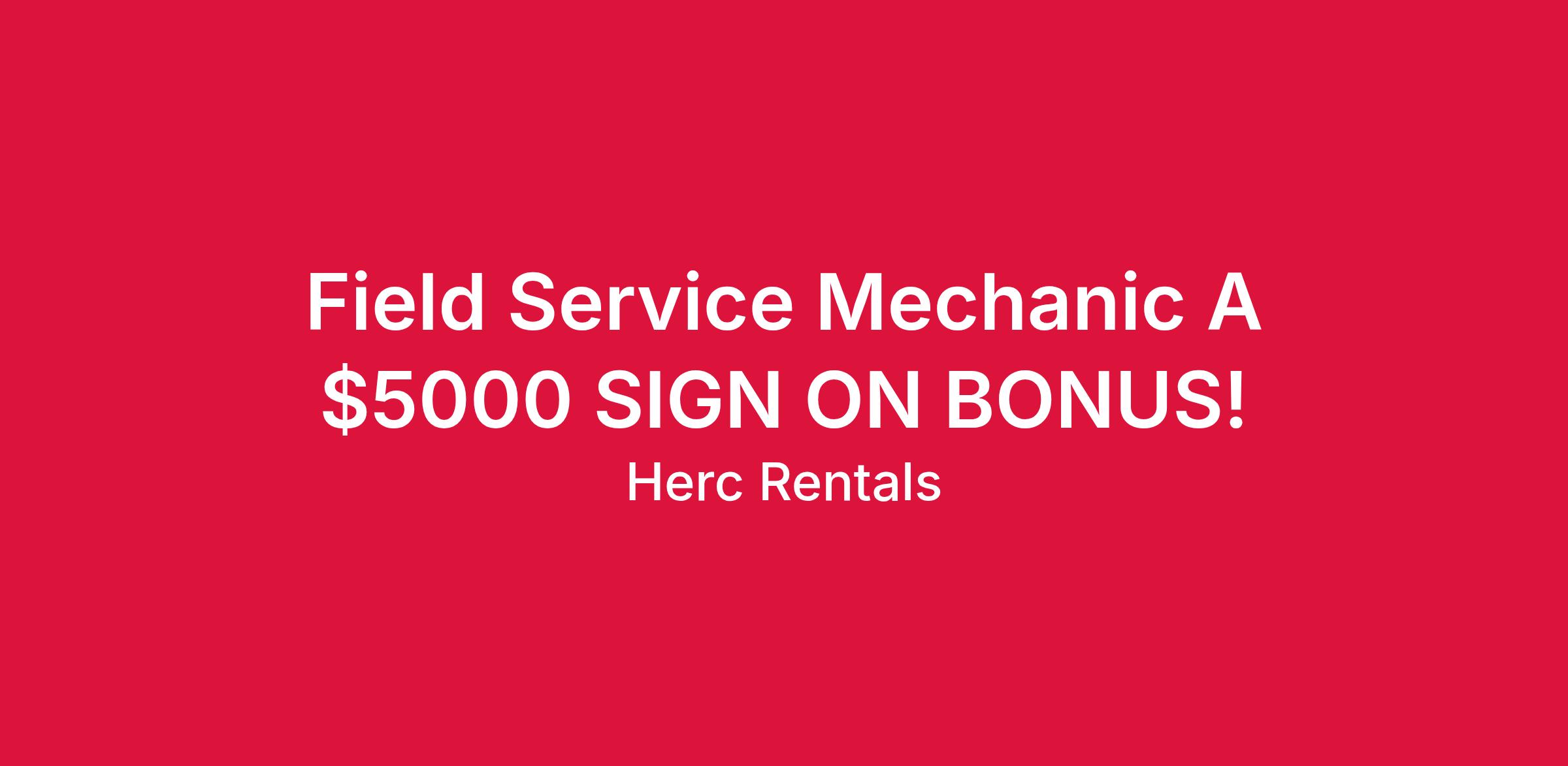 As a Field Service Mechanic A, you are a master technician and will assume a leadership role in product knowledge and standards of quality within the branch. You will serve as a go-to resource for utilizing your mechanical expertise to ensure Herc fleet remain in proper operating condition on our customer jobsites, at all times. Field Service Mechanics are dispatched to local jobsites at various times of the day and work independently without direct supervision. This provides the opportunity to build positive relationships with customers all while supporting the growth and improvement of your community.