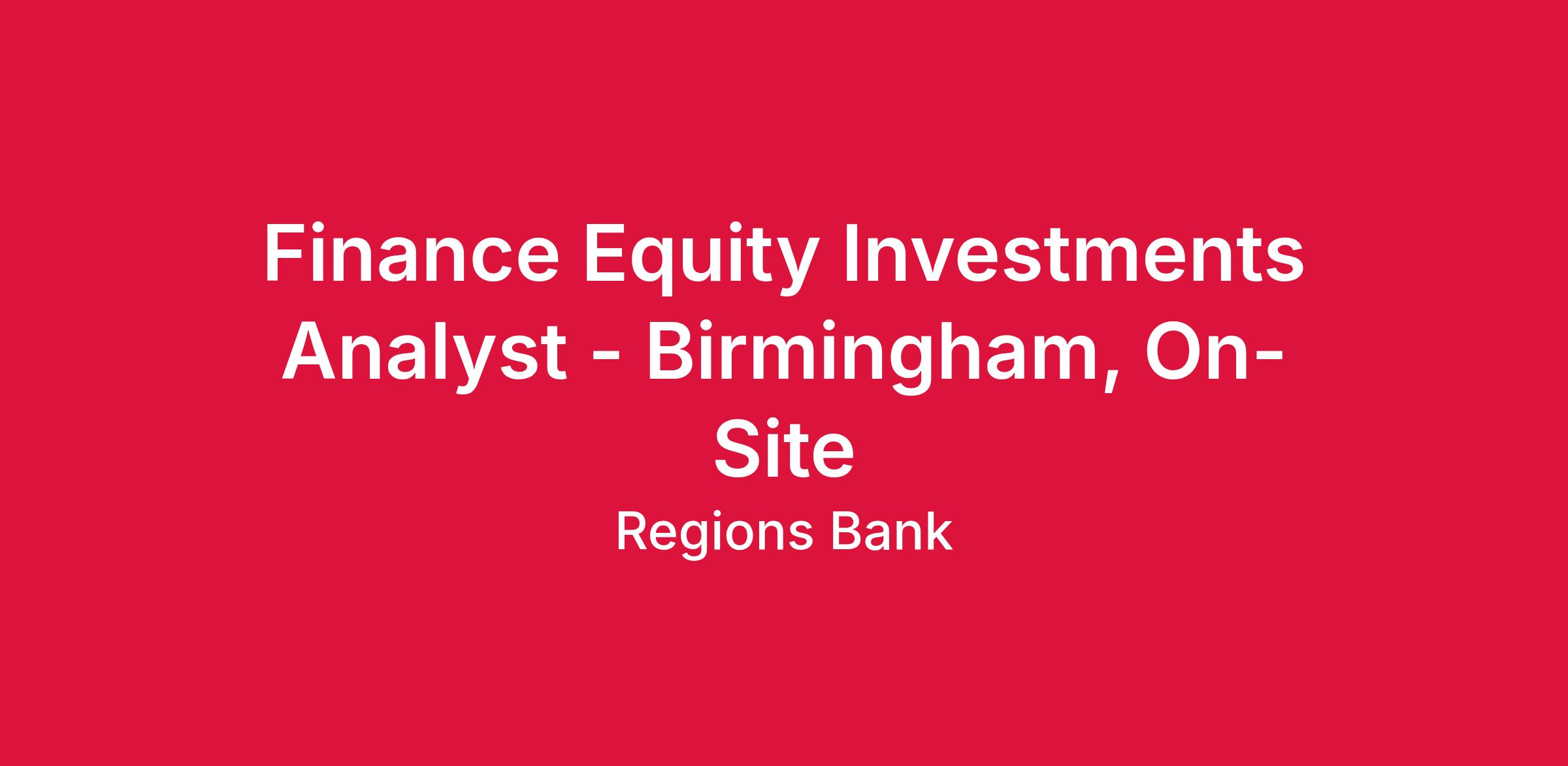 At Regions, the Finance Equity Investments Analyst assists Portfolio Managers in the deployment of capital and the management of the Bank and Holding Company’s equity investment portfolios.