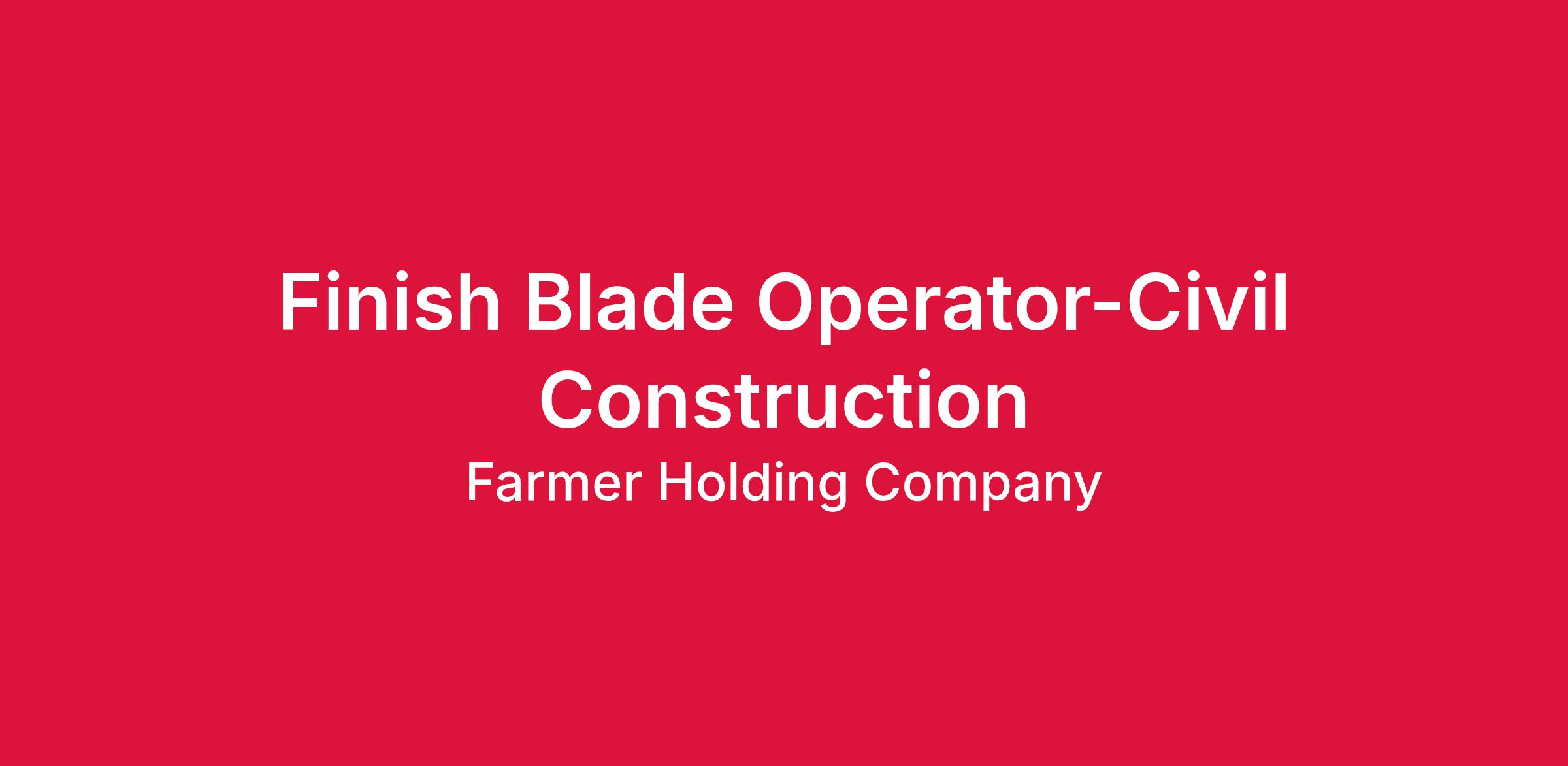 If you are an experienced Finish Blade Operator / Motor Grader Operator looking for steady work and competitive pay, apply now to join a growing heavy civil construction team.