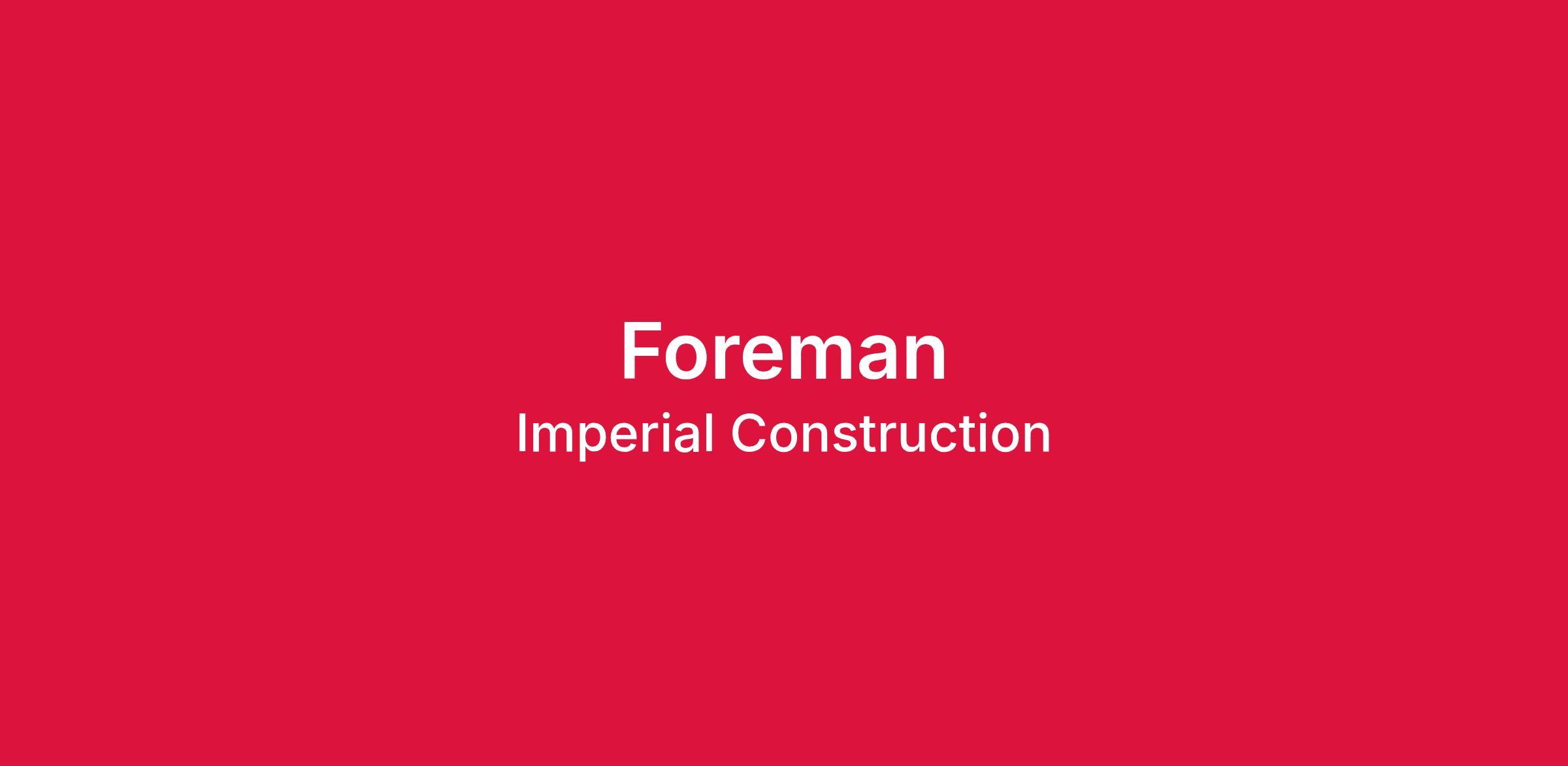 Imperial Construction is committed to elevating people, projects, partnerships, and communities. As a Foreman, you play a direct role in delivering that mission every day. Compensation is commensurate with experience.