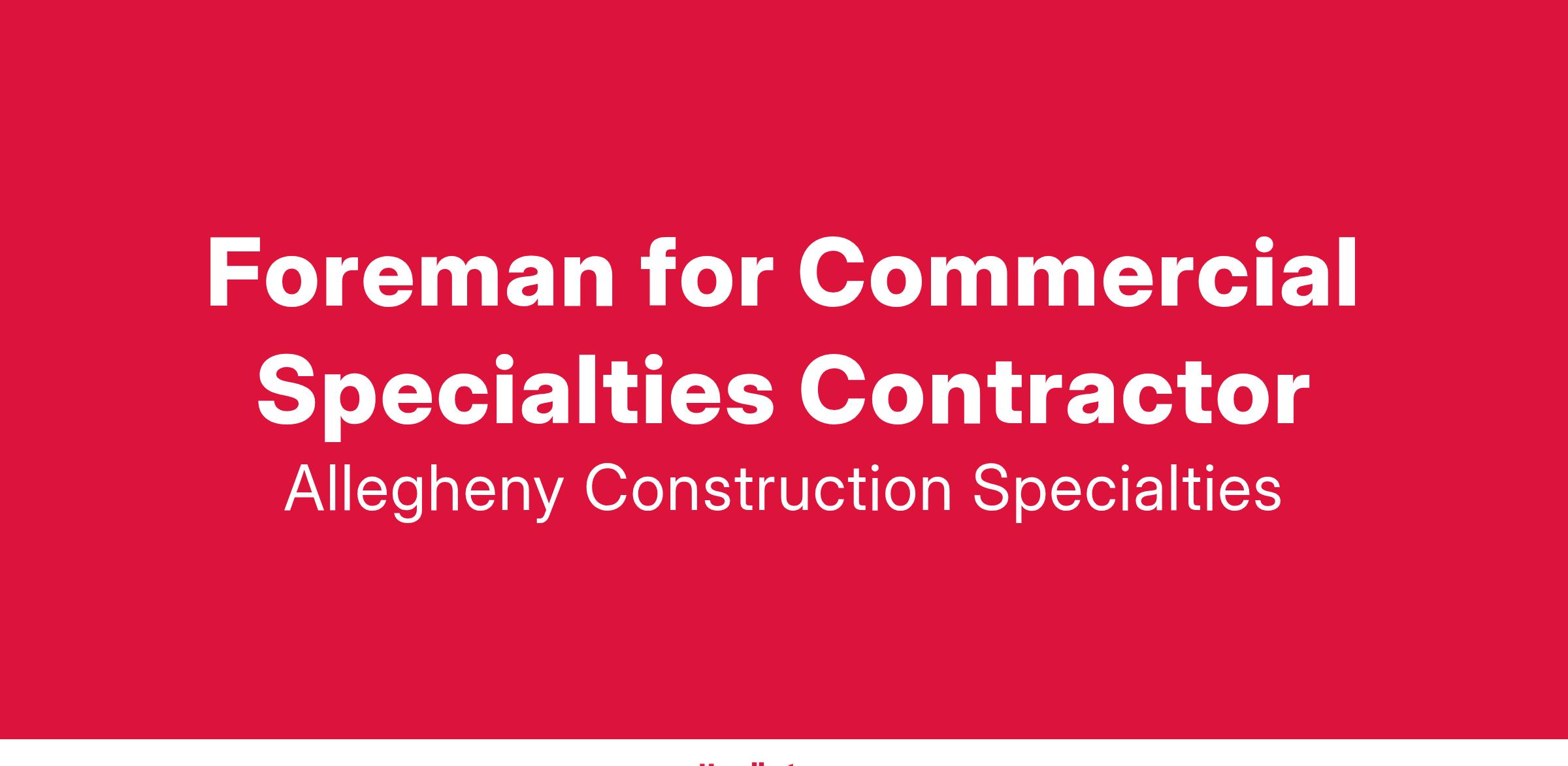 Foreman for Commercial Specialties Contractor