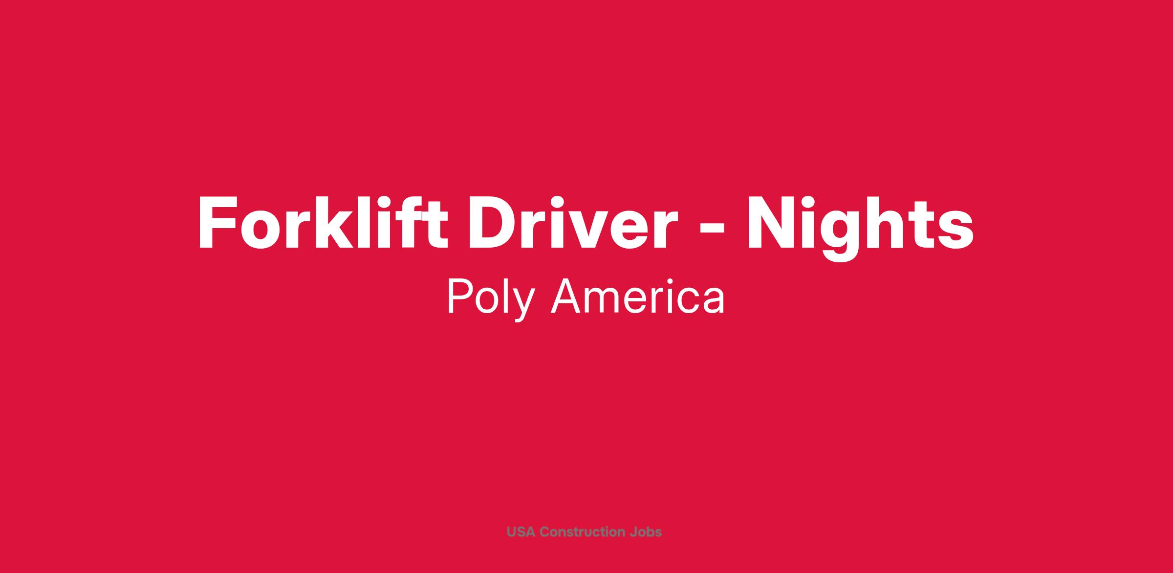 Poly-America, L.P. is currently hiring Forklift Drivers to join our shipping and receiving departments. Poly-America produces several lines of polyethylene products including high quality trash bags, construction and agricultural films.