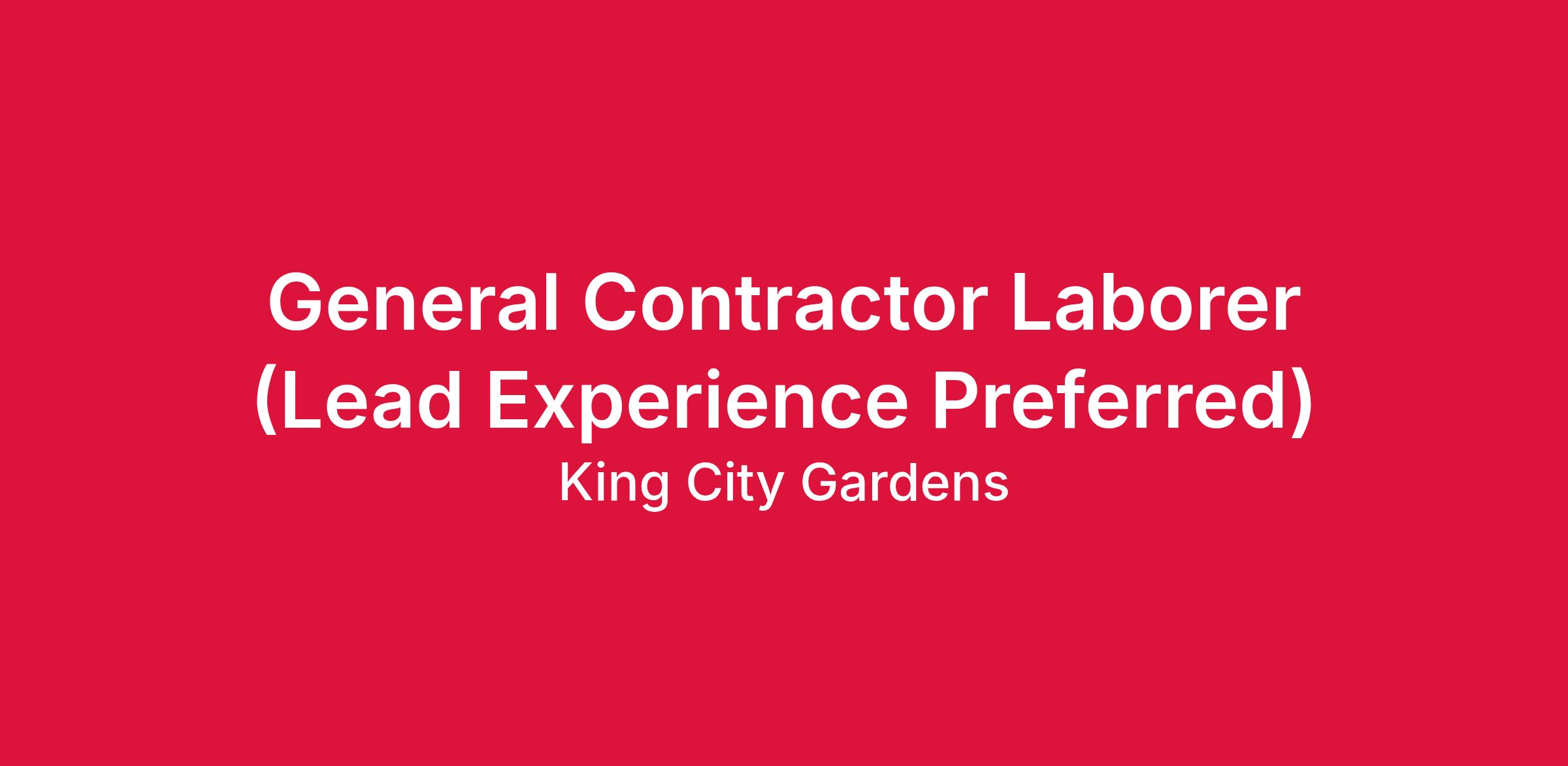 Job Title: General Contractor Laborer (Lead Experience Preferred)