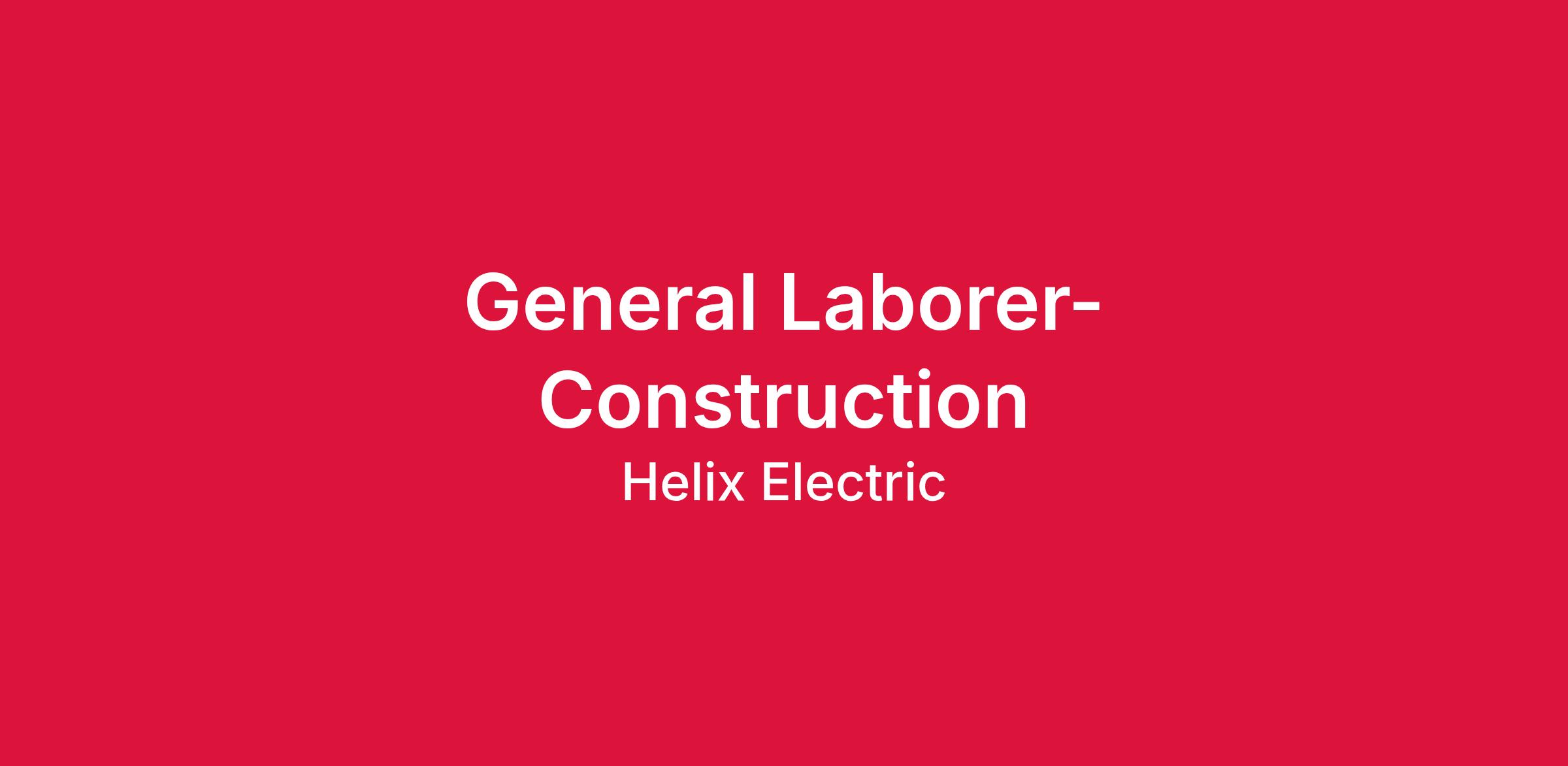 To better support complex projects, Helix Electric has need for a General Laborer-Construction. The successful candidate will be part of a production driven team, performing general labor tasks ** This project is in Cedar Rapids, Iowa ** You must be able to communicate in English