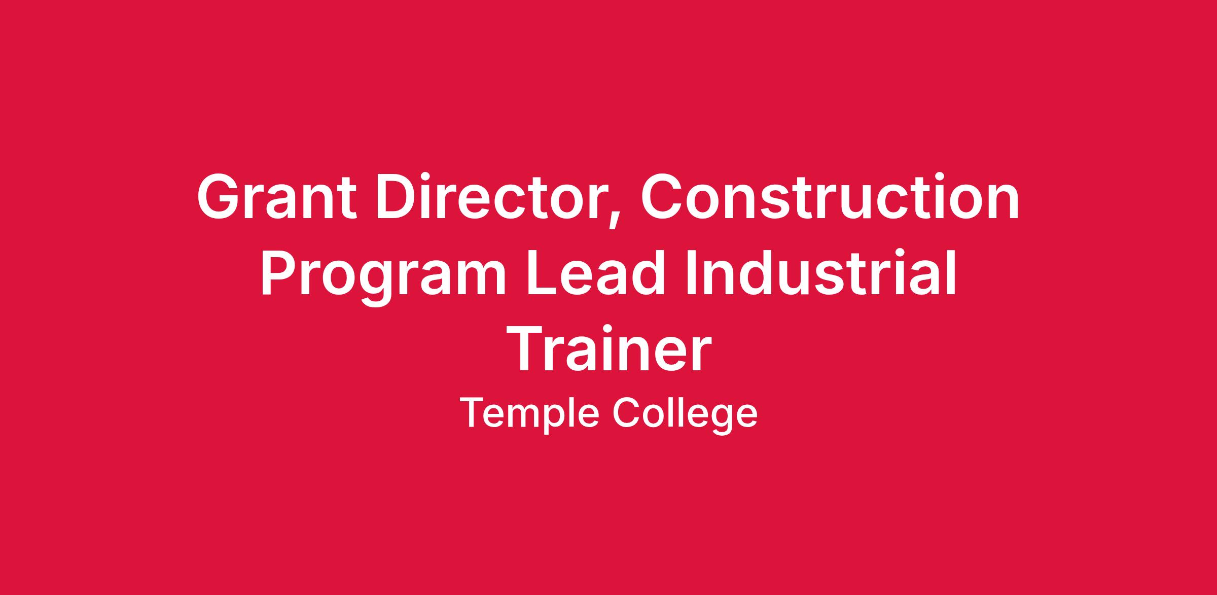 This position is grant-funded for two years and designed to transition to Program Lead and Industrial Trainer supporting Construction Management and Skilled Trades programs at Temple College. Continued employment is contingent upon program sustainability and institutional needs. The life-cycle of the grant is two (2) years.