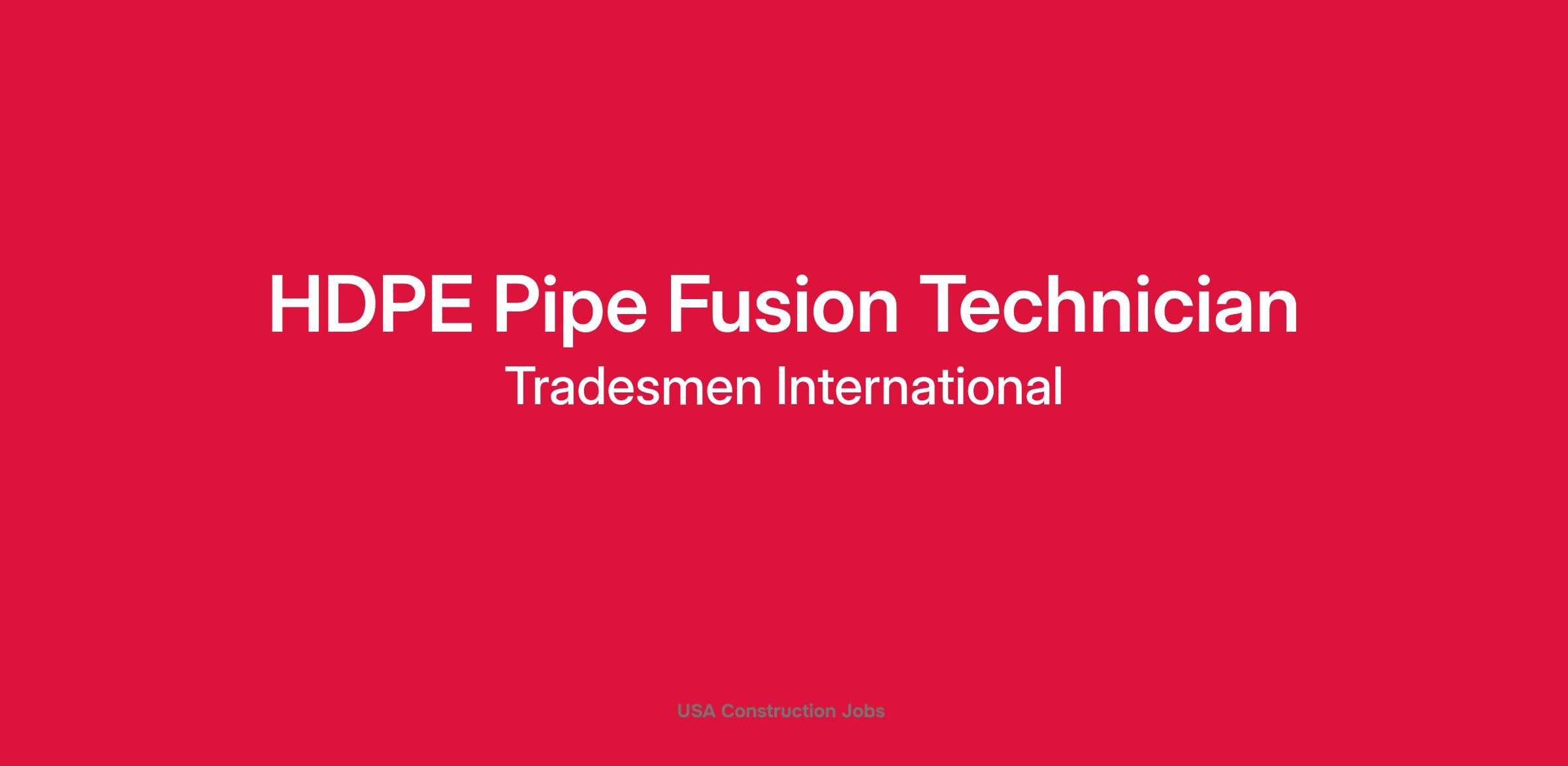 Tradesmen International is immediately hiring experienced HDPE Pipe Fusion Technicians for projects located in and around Salt Lake City, UT. This is a full time opportunity with a pay range of $30-35/hour based on experience and skill level. If you are an HDPE Pipe Fusion Technician and want to work alongside other proven craftsmen who emphasize safety, productivity and superior craftsmanship, this is your chance to advance your career!
