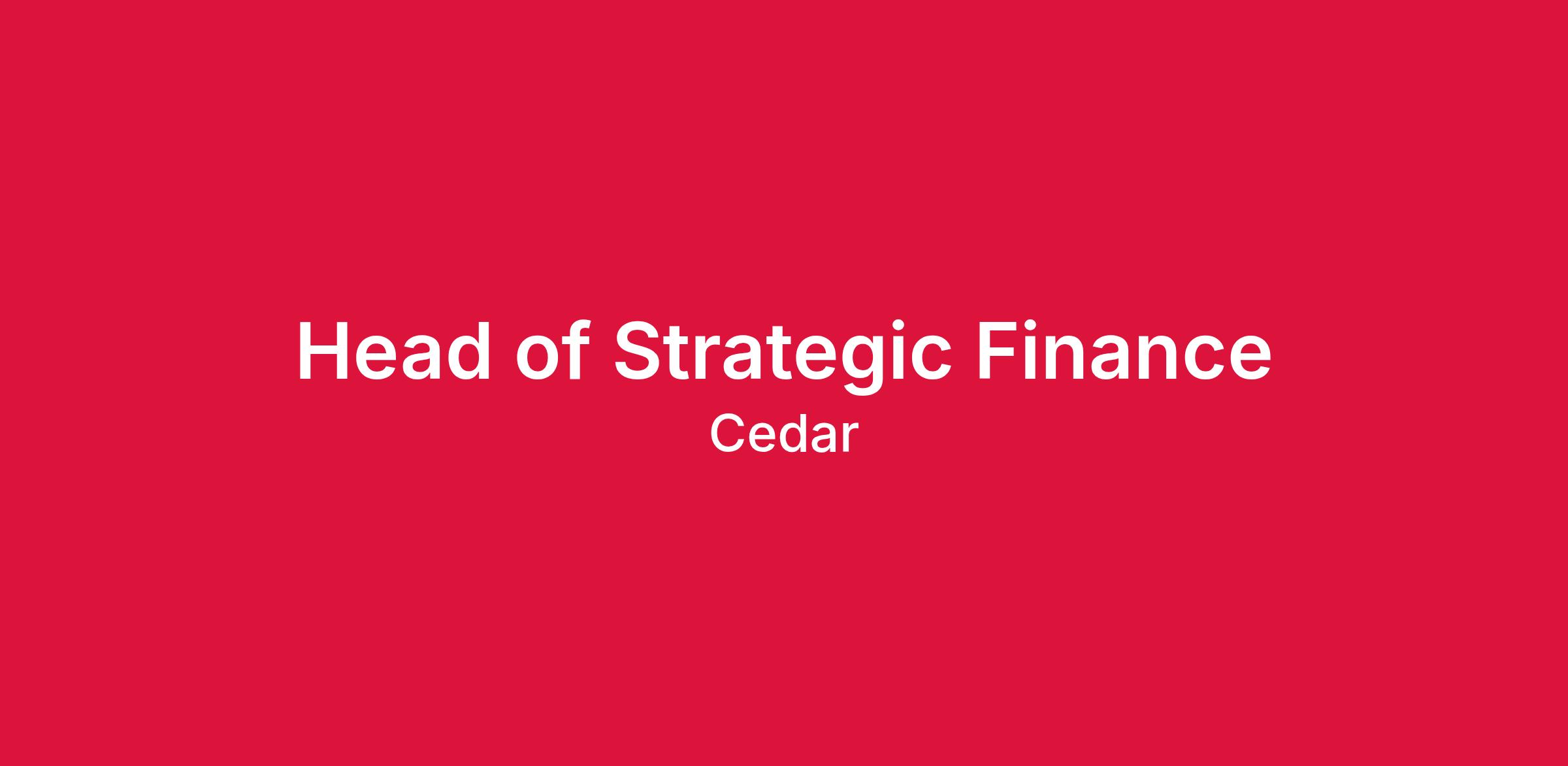 - Build and evolve strategic finance capabilities as Cedar scales.