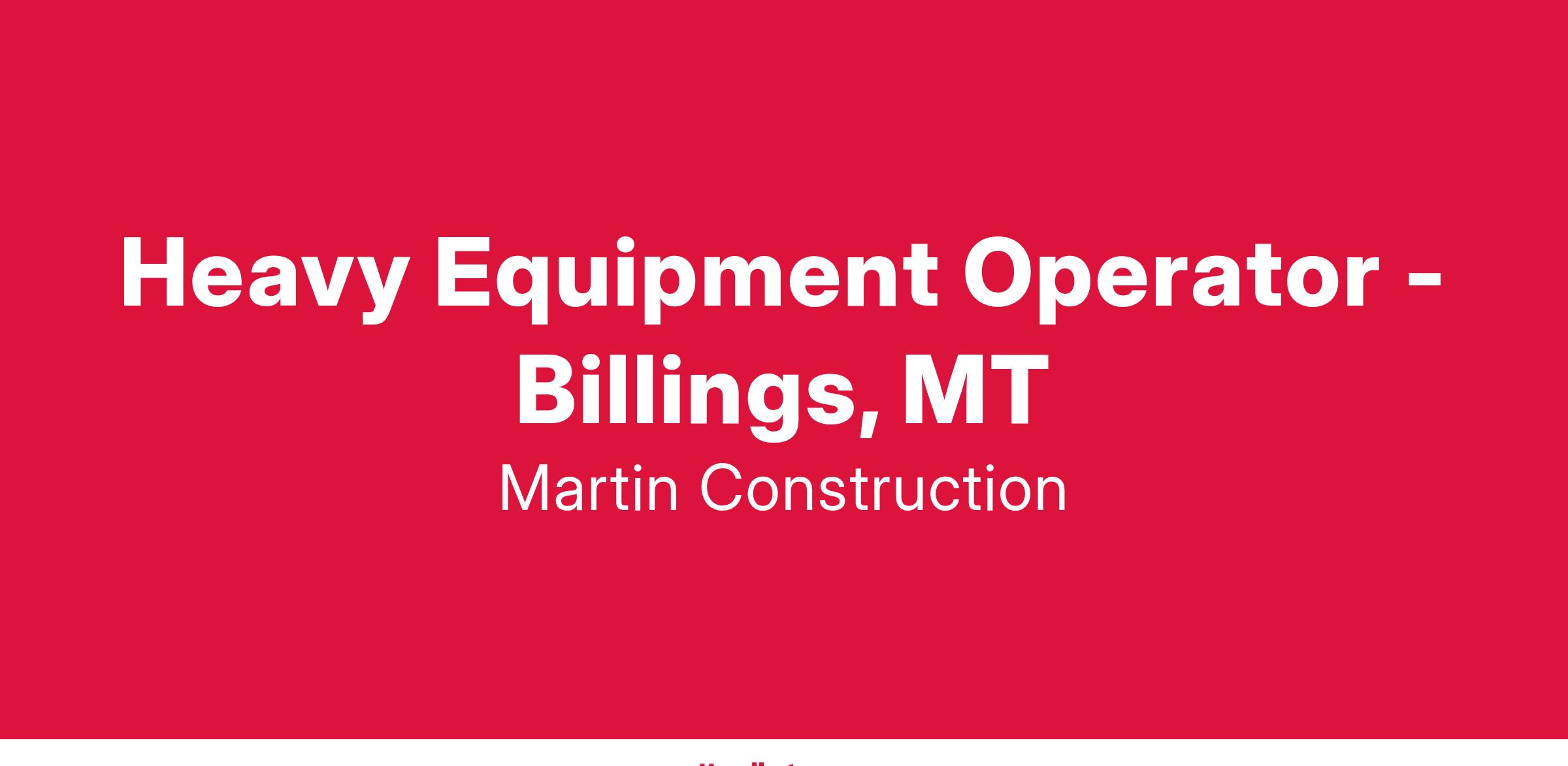 Heavy Equipment Operator - Billings, MT