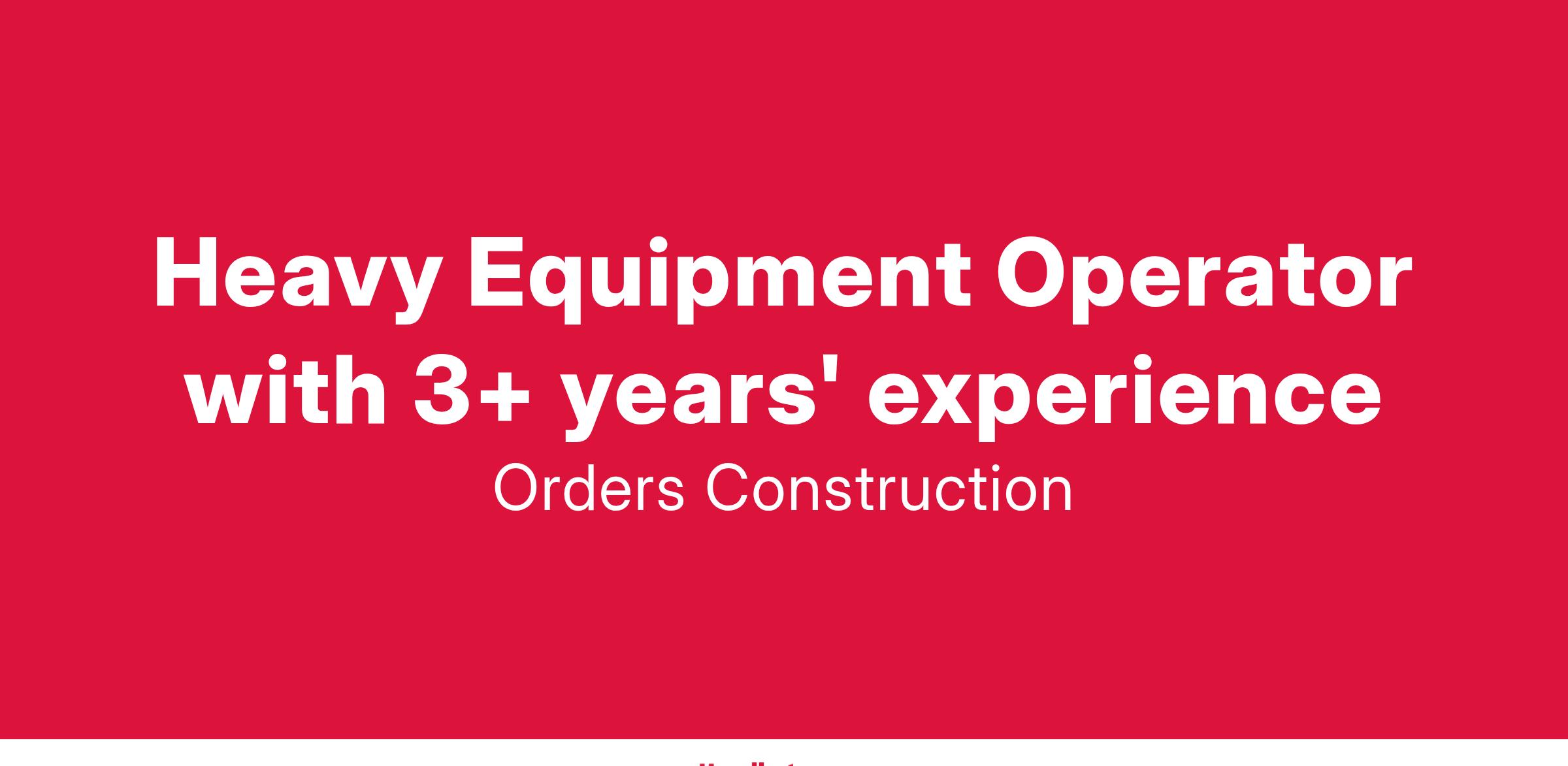 Heavy Equipment Operator with 3+ years' experience