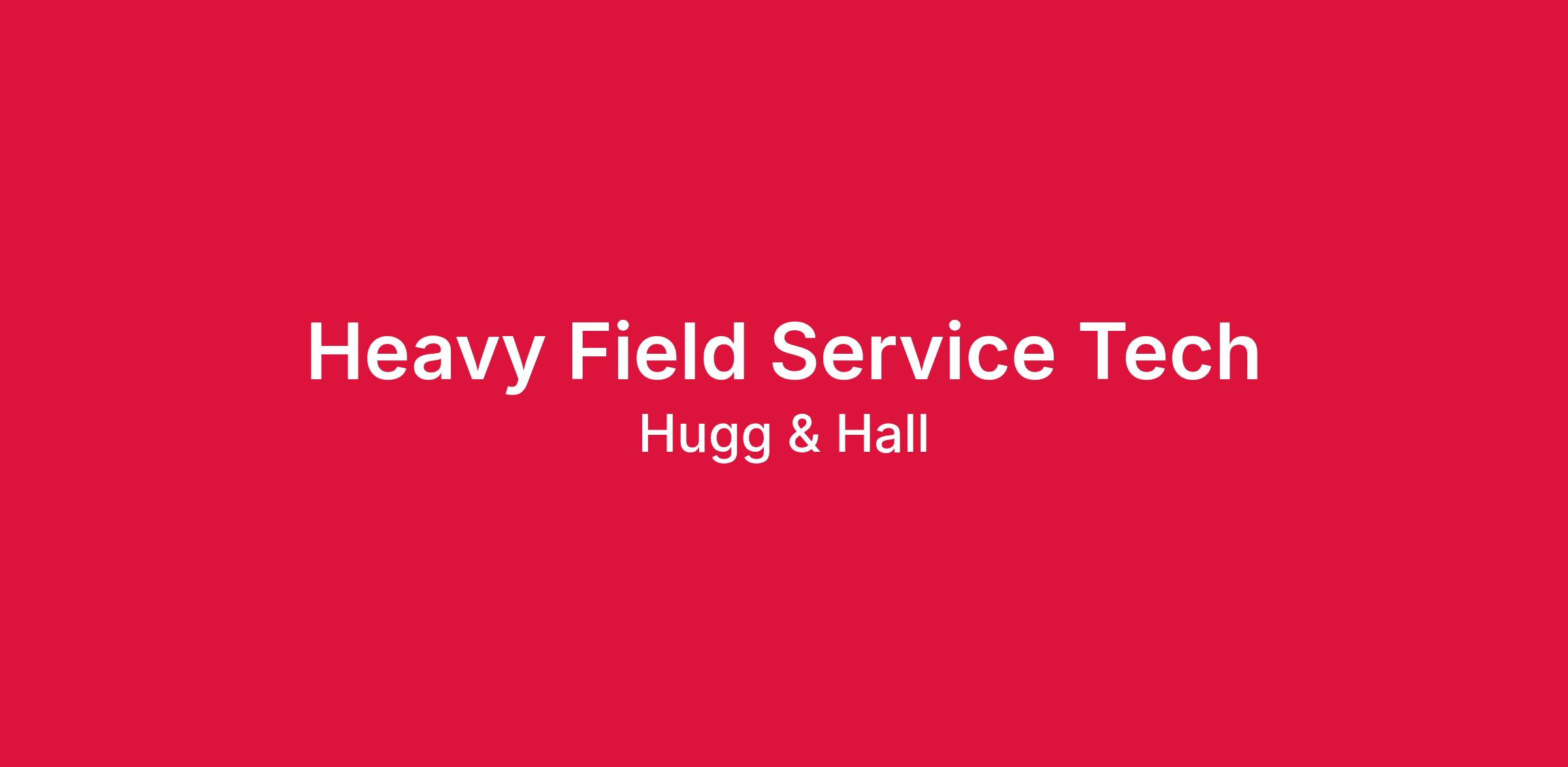 Hugg & Hall Equipment Company is looking for someone with mechanical knowledge and customer service skills to join our team as a Heavy Field Service Technician. We are a full-service equipment company specializing in industrial and construction equipment since 1956. More information about us can be found below or on our website.
