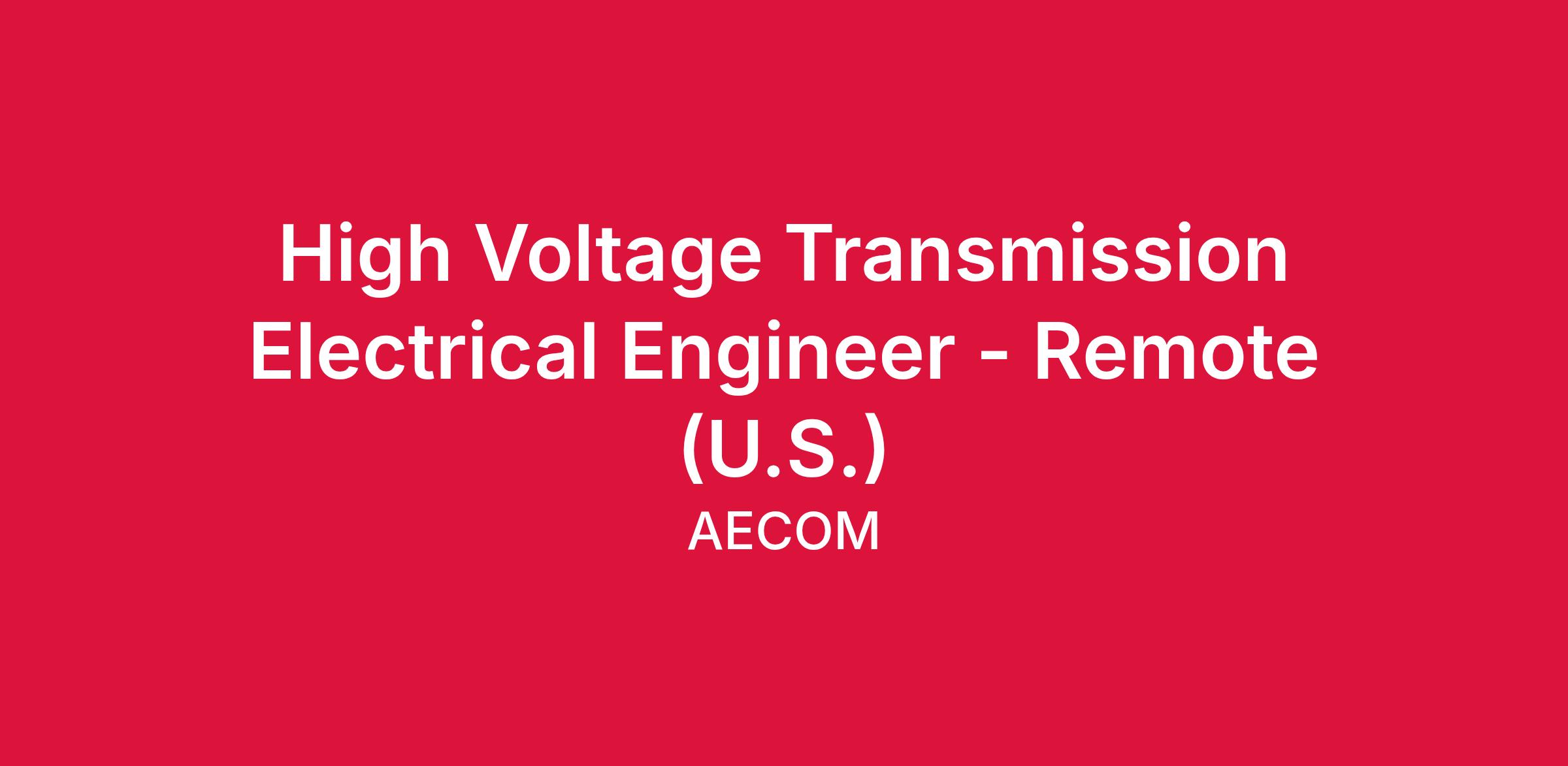 High Voltage Transmission Electrical Engineer - Remote (U.S.)