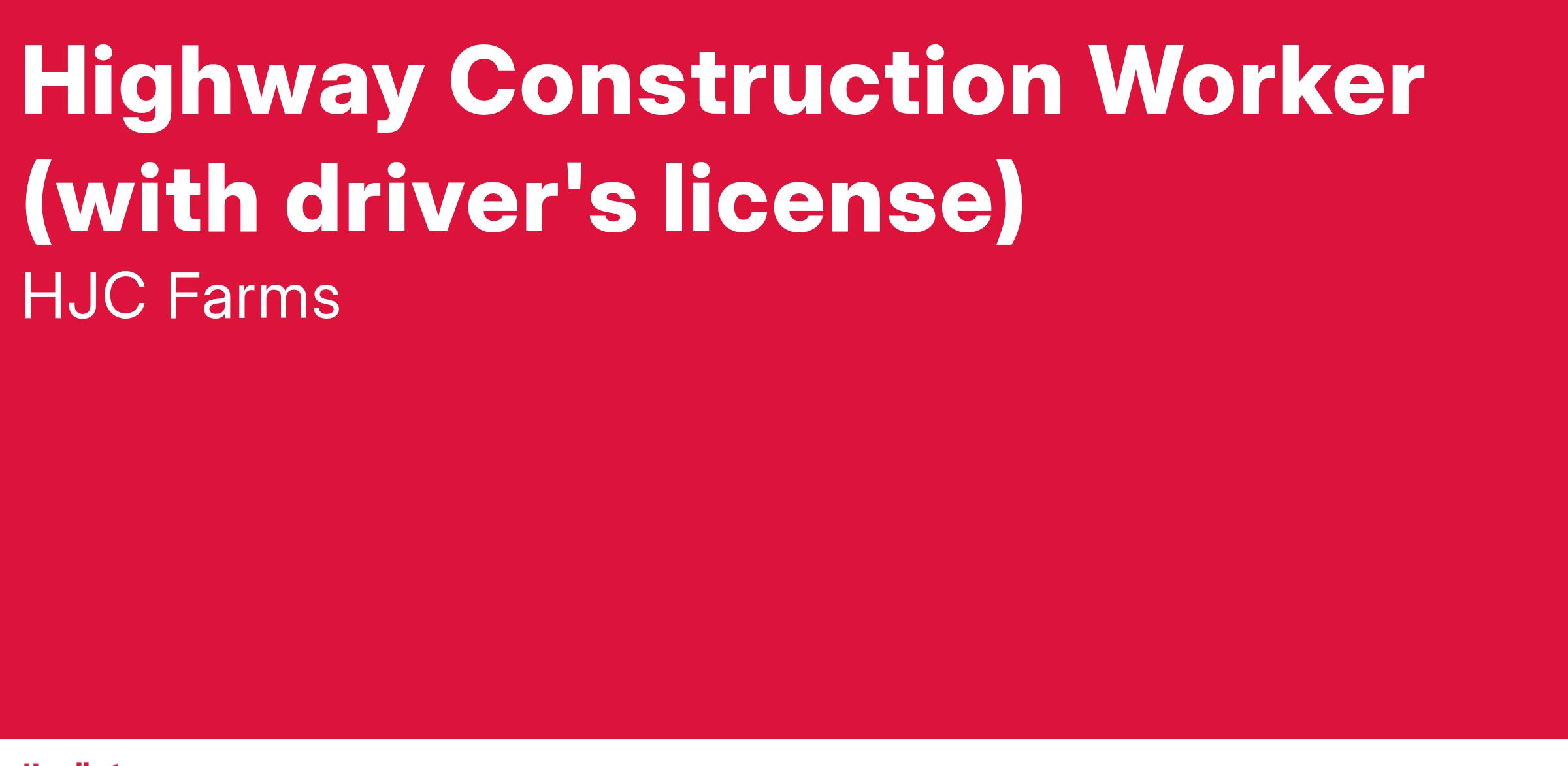 Job Title: Highway Construction Worker (with or without Driver's License)