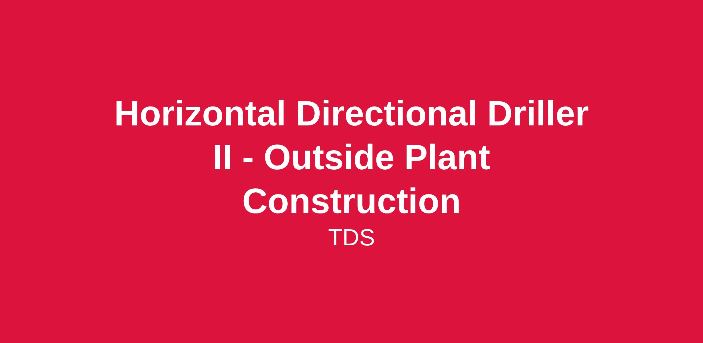 Please note: This position may be filled as a Horizontal Directional Driller II- Outside Plant Construction (ID #2026-28627), or Horizontal Directional Driller III- Outside Plant Construction (ID#2026-28628) based on the candidate's skills and qualifications. Separate job postings outline the minimum requirements for each role. Please review both postings and apply to any level for which you are qualified and interested.