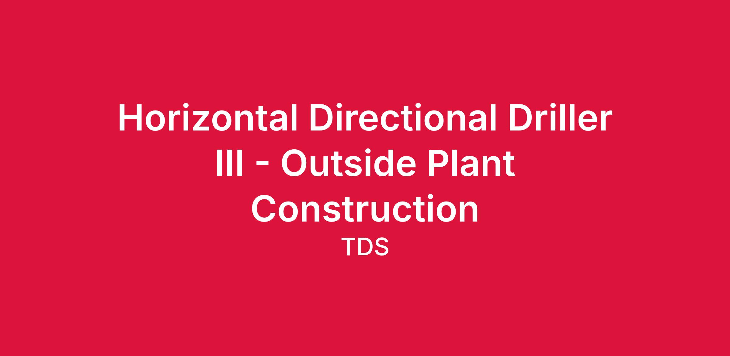 Please note: This position may be filled as a Horizontal Directional Driller II- Outside Plant Construction (ID #2026-28627), or Horizontal Directional Driller III- Outside Plant Construction (ID#2026-28628) based on the candidate's skills and qualifications. Separate job postings outline the minimum requirements for each role. Please review both postings and apply to any level for which you are qualified and interested.