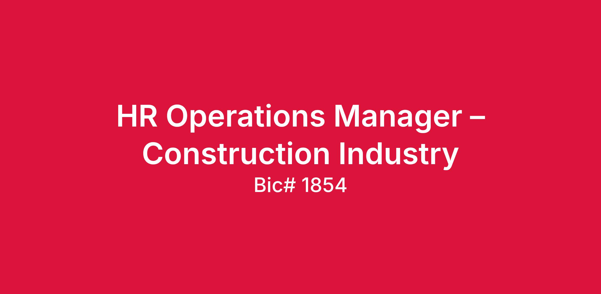 HR Operations Manager - Construction Industry