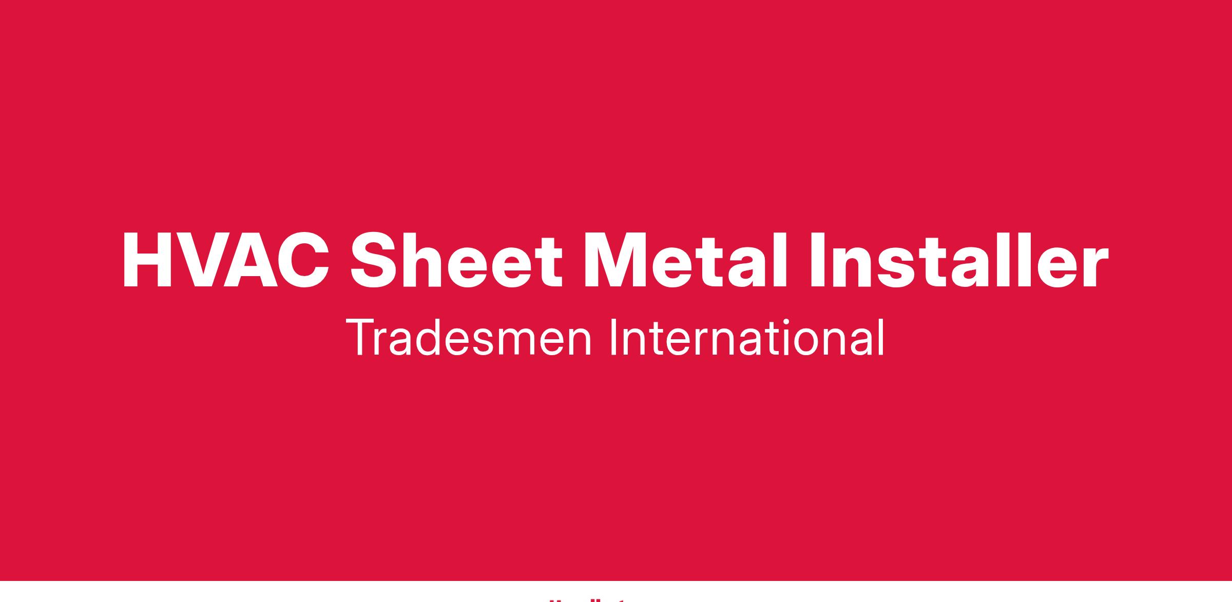 Tradesmen International is looking to expand our team of qualified Trade Professionals for current & future projects in and around Knoxville, TN. Most positions are first shift with a pay range of up to $30/hour based on experience & skill level. If you are a Sheet Metal Installer and want to work alongside other proven Craftsmen who emphasize safety, productivity and superior workmanship, this is your chance to advance your career!