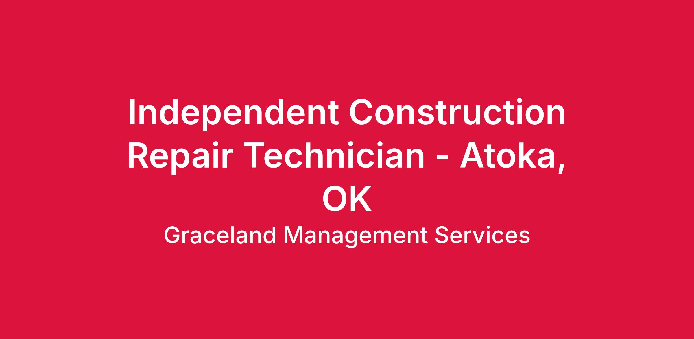 We are looking for a Repair Technician to service Graceland Portable Building's customers in and around the Atoka area. This candidate will be responsible for visiting our customer's homes to perform repair work on our quality barns, cabins, garages and sheds. The candidate will be an independent contractor on behalf of Graceland Portable Buildings, LLC and must provide their own transportation and tools. If you are interested in working with a top notch team at a growing company, this is the job for YOU!