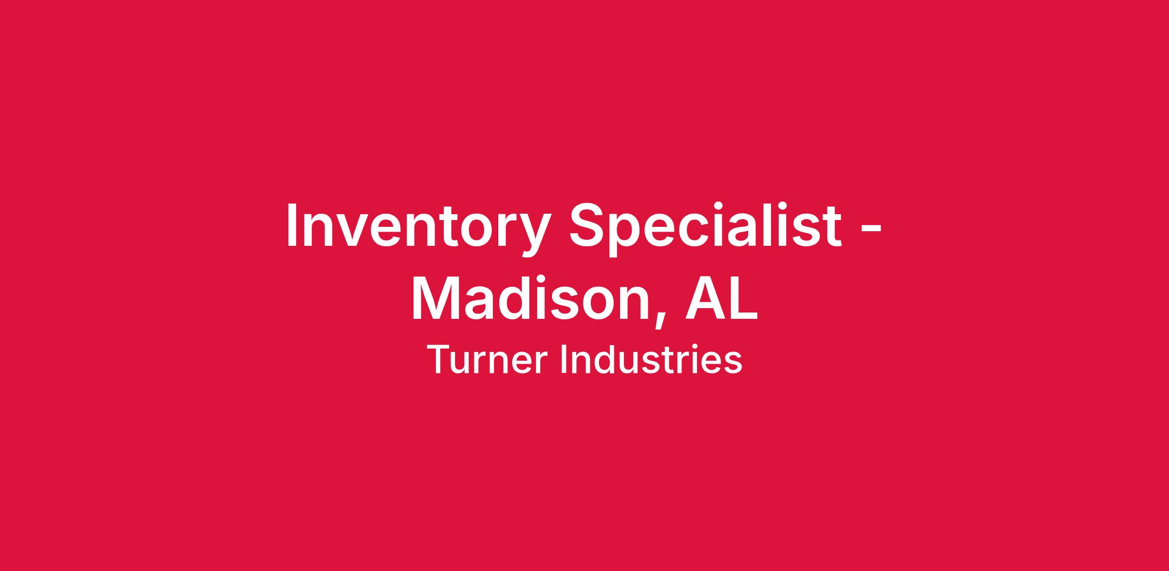 Turner Industries Group, LLC has an opening for an Inventory Specialist to join our Team in the Decatur, AL area. The Inventory Specialist will be responsible for receiving, storing, and distributing material, tools, equipment, and products.