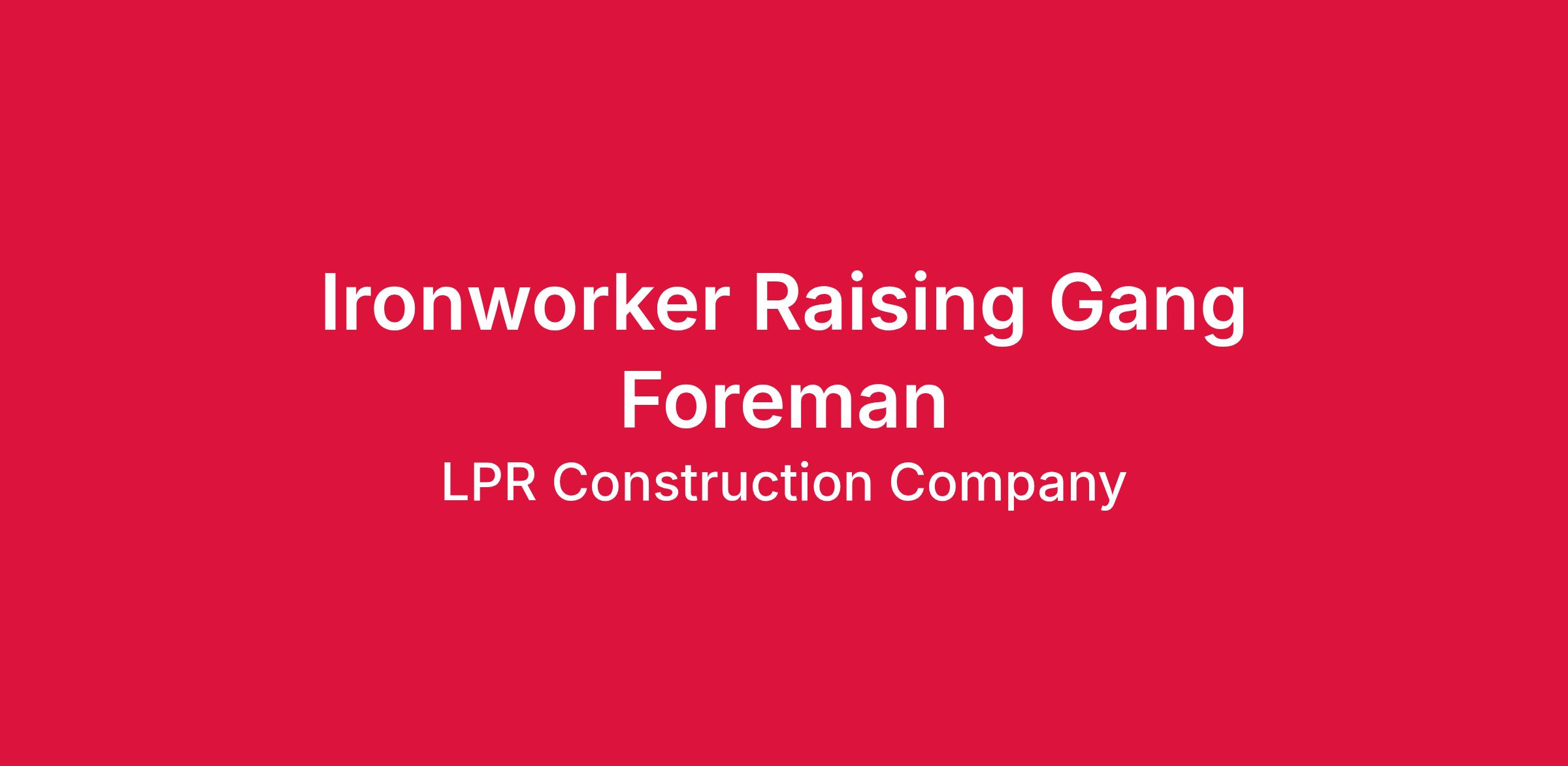 The Raising Gang Foreman has the function of supervising work crews and coordinating their materials and equipment requirements for each assigned project. Thrives in a fast-pace environment and works to complete assignments in a quick and efficient manner. Highly knowledgeable in Structural Ironwork, specifically in raising gangs.