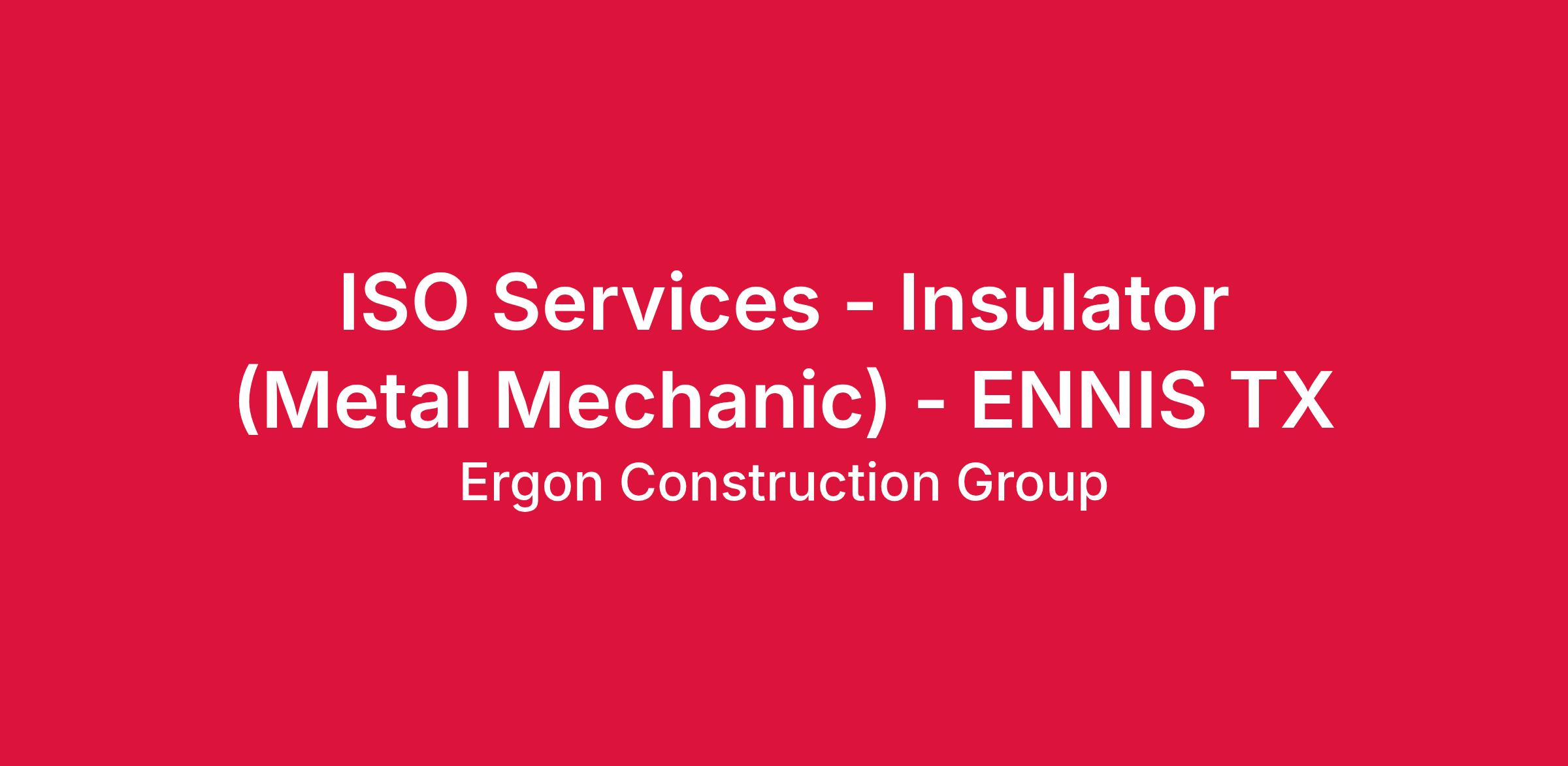 The Industrial Insulator/Metal Mechanic is responsible for the installation of insulation and metal coverings. The MM is also tasked with following all safety rules set forth by ISO Services. The MM should be knowledgeable in all aspects of insulation and be willing to help in other areas of the shop when needed.