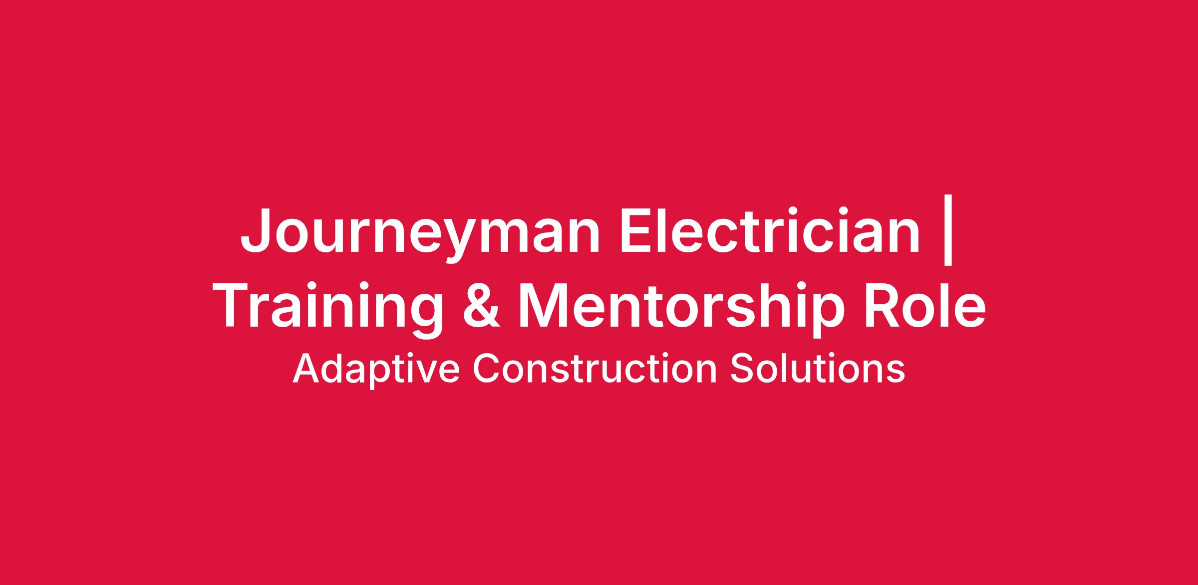Journeyman Electrician | Training & Mentorship Role