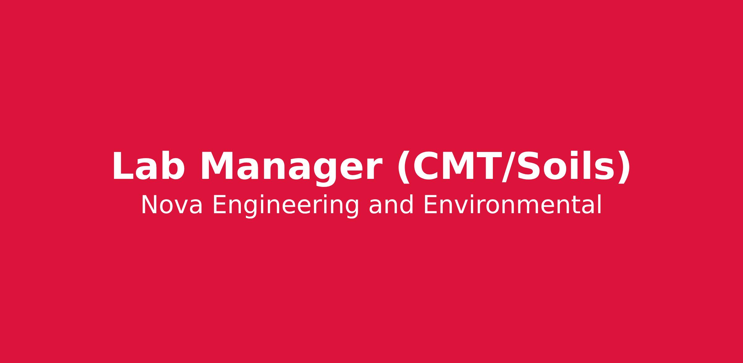 NOVA Engineering is currently seeking a highly skilled CMT Laboratory Manager to join our team in Tallahassee, FL. The Lab Manager will manage the lab's production and personnel and provide quality assurance/quality control lab testing duties for commercial, retail, educational, low—to high-rise, manufacturing, and government construction projects.