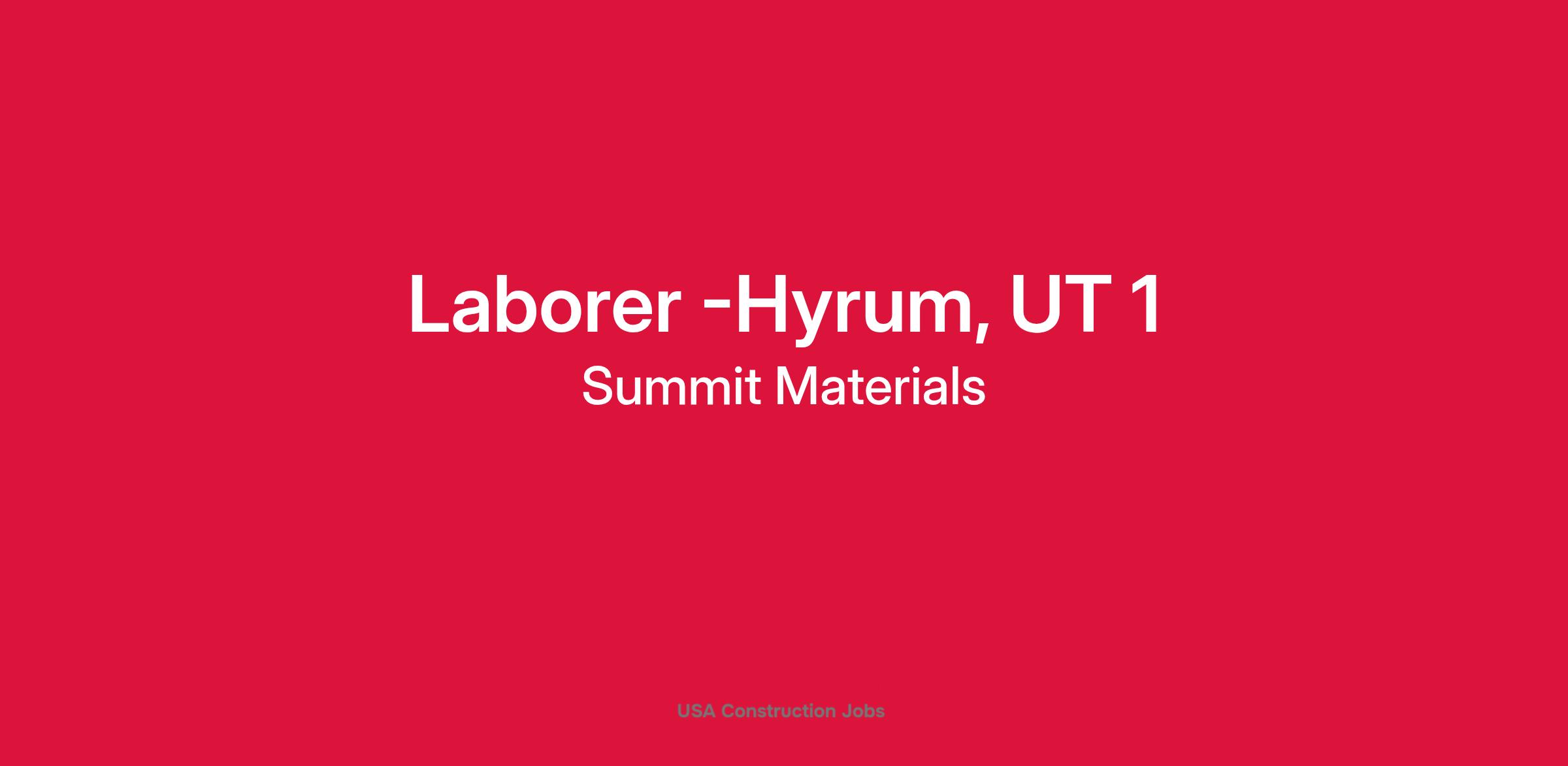 LeGrand Johnson Construction, a Summit Materials company, is looking for Groundman Laborers at our Hyrum, UT aggregate pit. In this position you will be responsible for supporting production operations by performing work required to maintain consistent operation of plant and equipment.