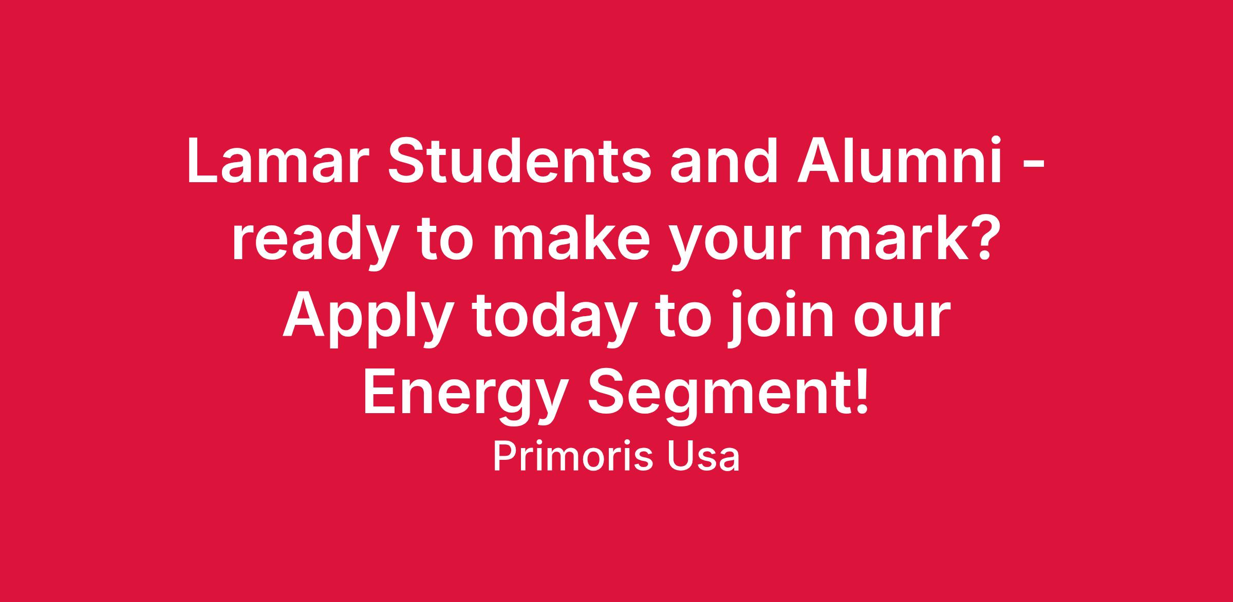 Lamar Students and Alumni - ready to make your mark? Apply today to join our Energy Segment!