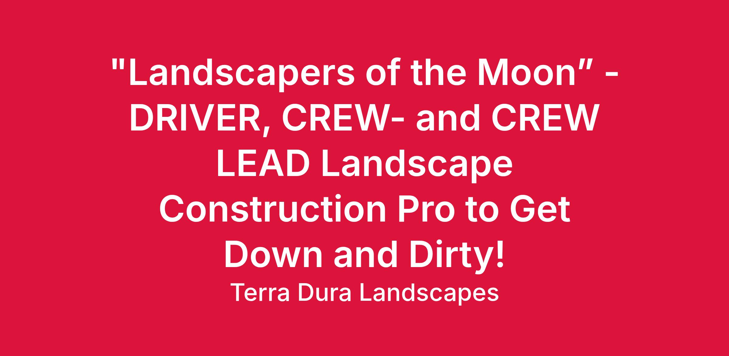Looking for skilled people who want to join our landscape design/ build/ maintain team as Drivers and Crew leads