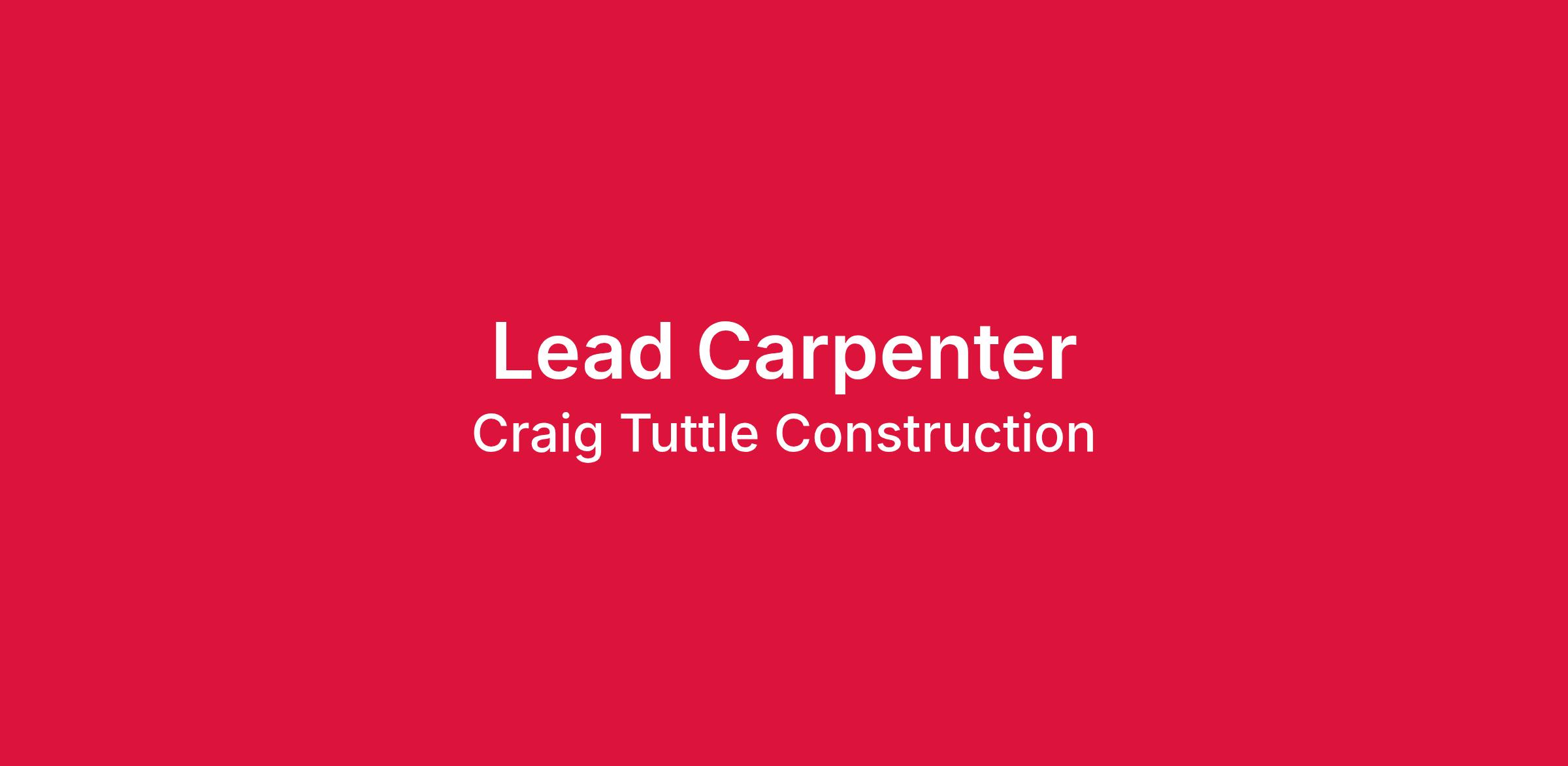 Craig Tuttle Construction is a Full-Service General Contractor/Builder and we have been specializing in high end residential construction for 25 years and are looking to add experienced carpenters in framing and finish/trim.