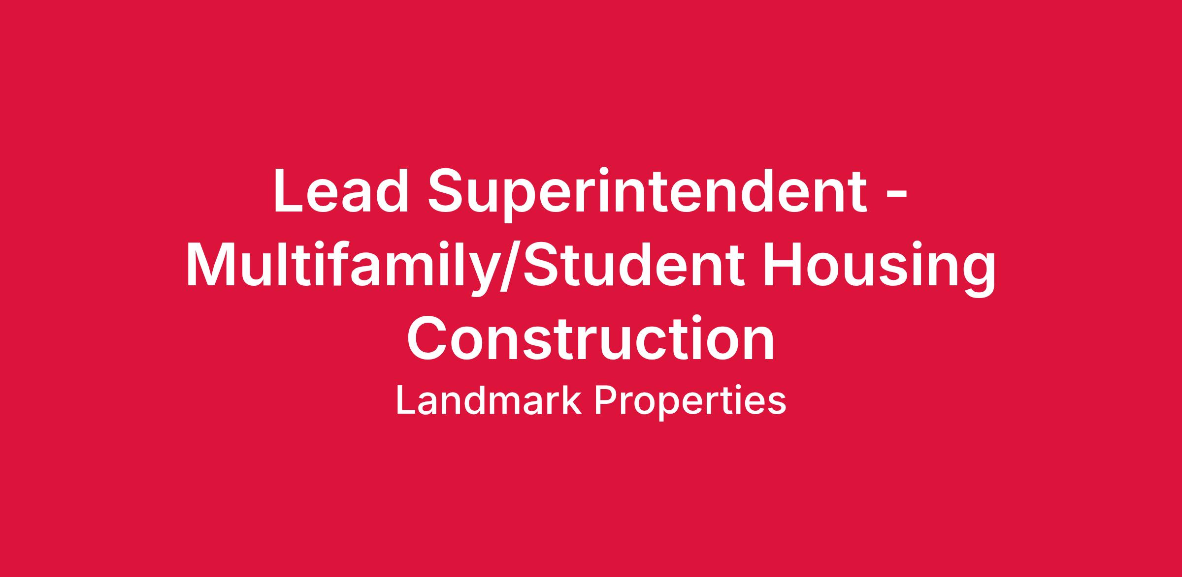 Landmark Construction, Landmark Properties', in-house general contractor, is looking for Traveling Superintendents to join our team.