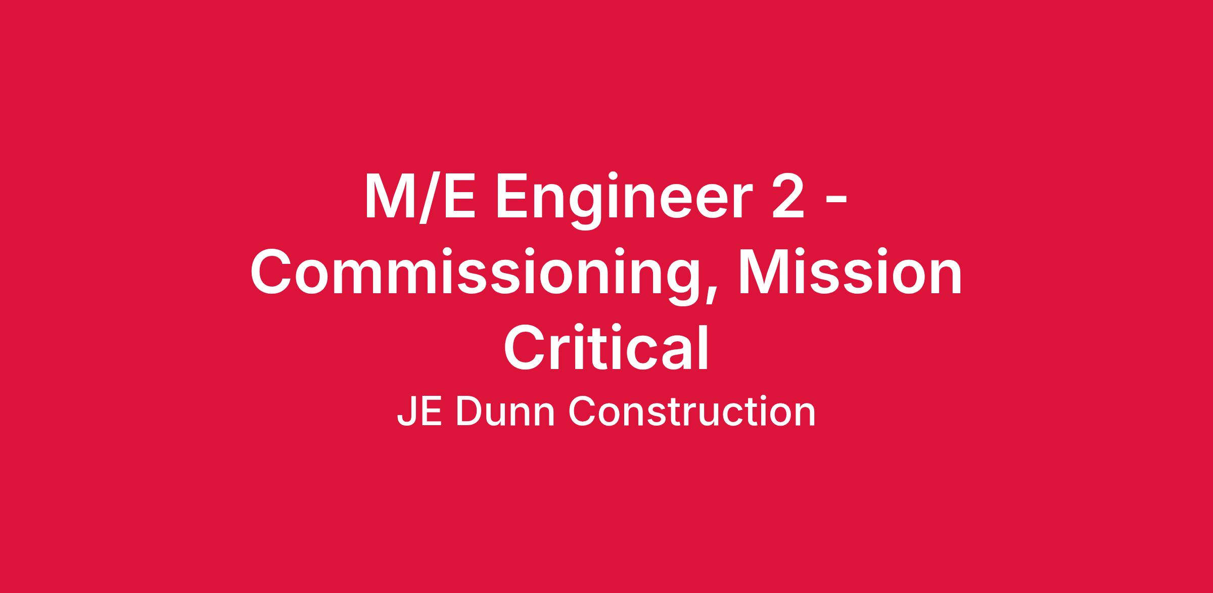 The M/E Engineer 2 will complete routine mechanical, electrical and field construction activities. This position will be responsible for collecting and assembling data, helping to develop estimates and helping to generate systems and bid analysis. All activities will be performed in support of the strategy, vision and values of JE Dunn.