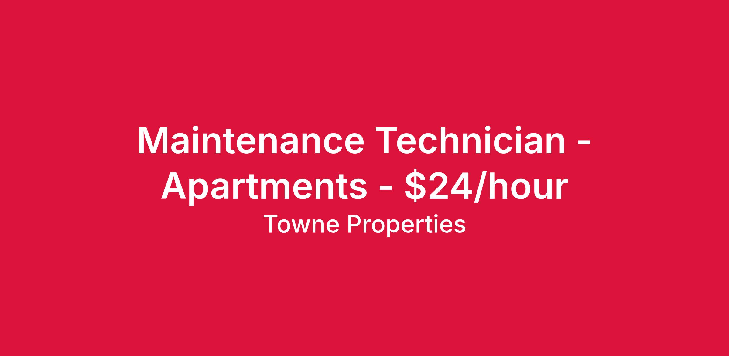 Towne Properties is an Equal Opportunity Employer. Satisfactory background and MVR checks are required as a condition of employment.