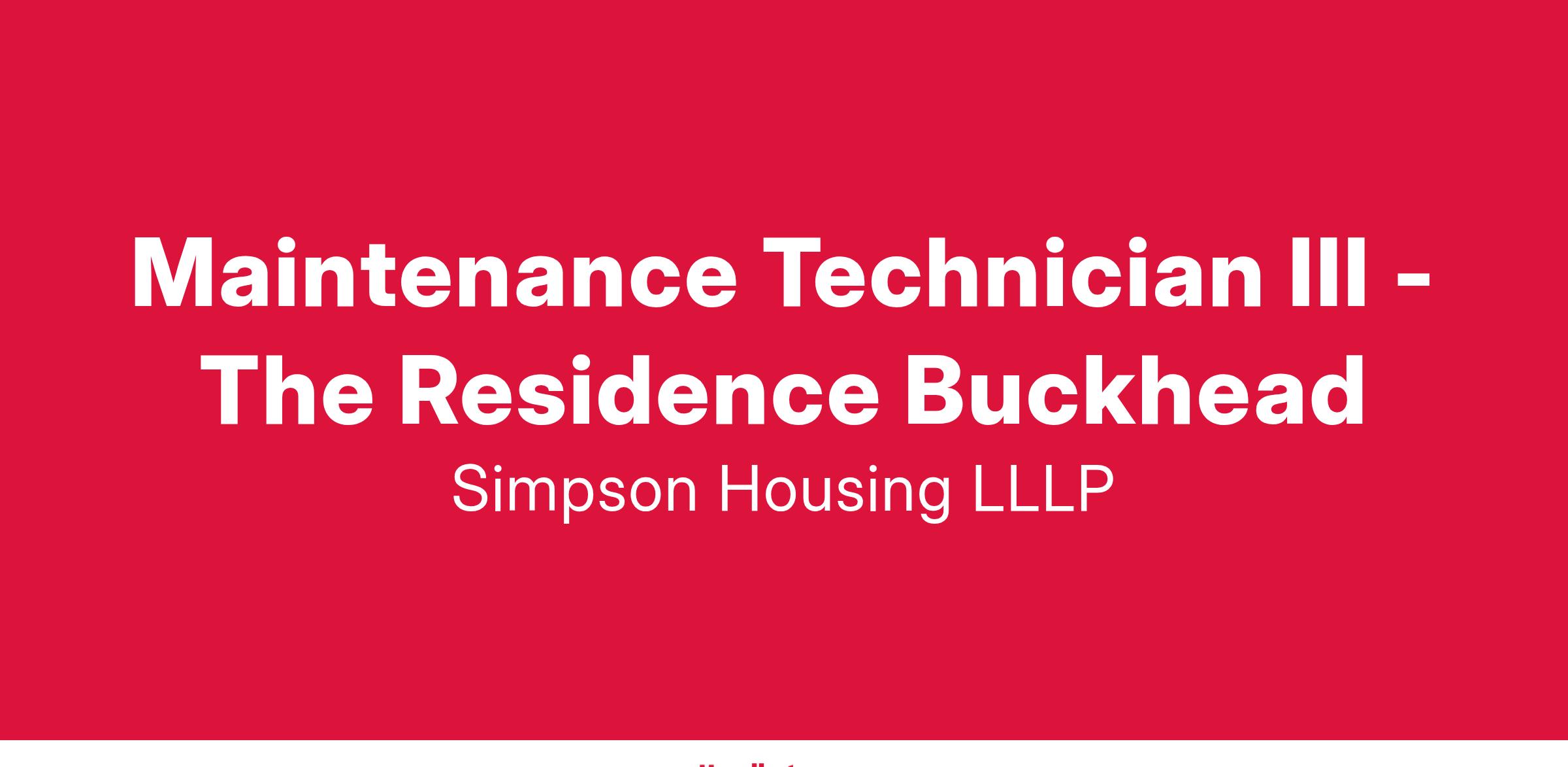 Maintenance Technician III - The Residence Buckhead Atlanta Luxury Apartment Homes (a premier class A 370-unit high-rise community located in the Buckhead Village District) – Atlanta, GA