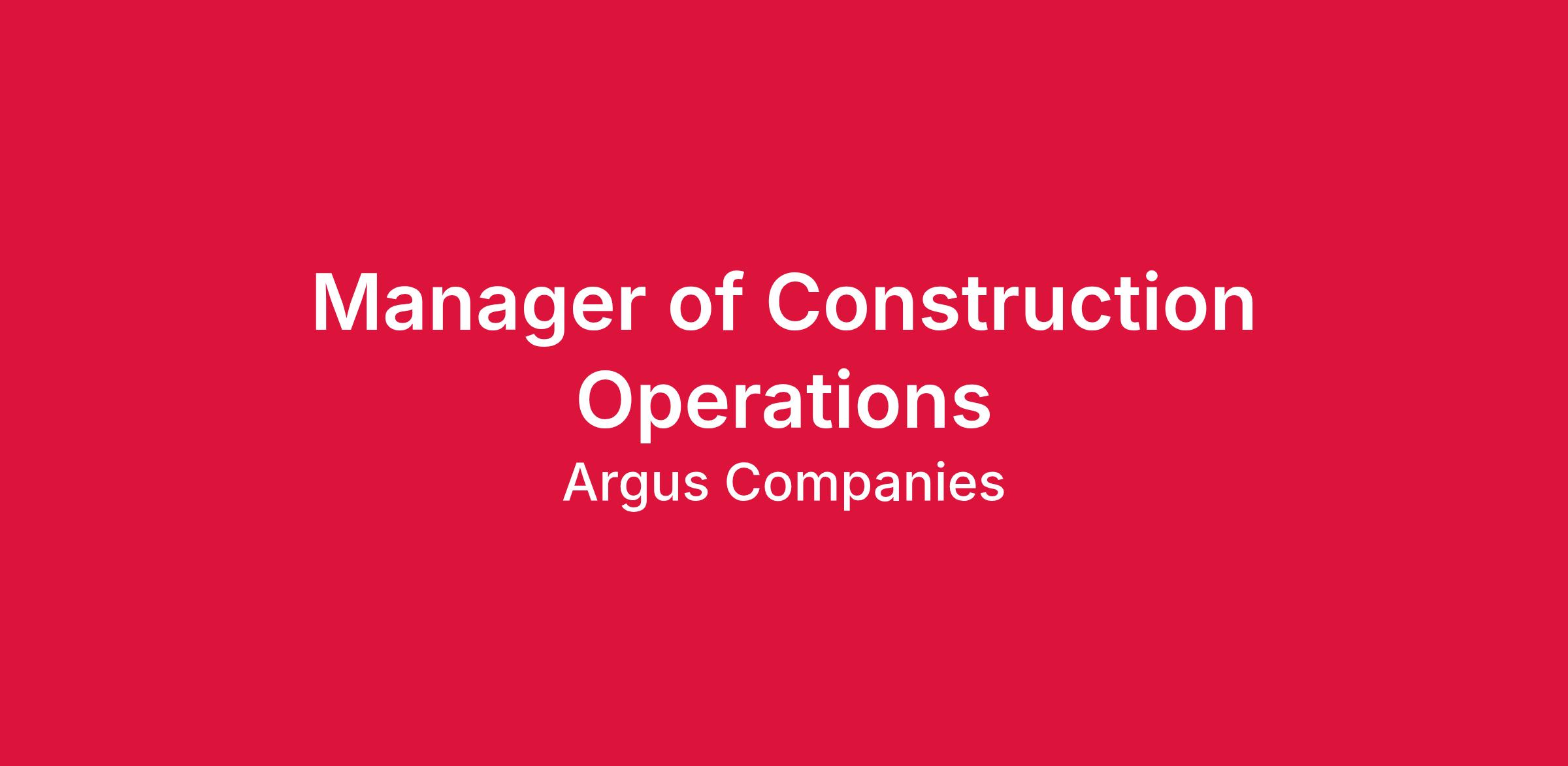 DescriptionArgus Construction Management is seeking a Manager of Construction Operations to lead and optimize our construction operations across both the home office and field project environments. This senior leadership role is responsible for ensuring safe, high-quality, on-schedule, and profitable project delivery while guiding operational strategy, project performance, and team development.