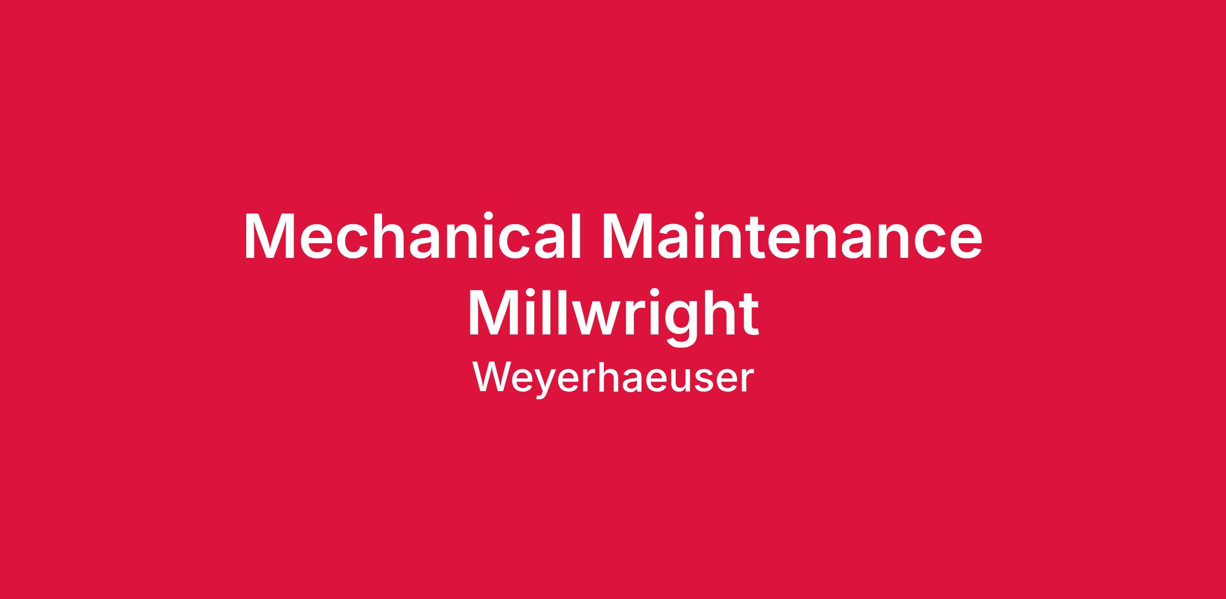 Weyerhaeuser Company is accepting applications for Maintenance Mechanical Millwrights for our Dierks, AR Lumber