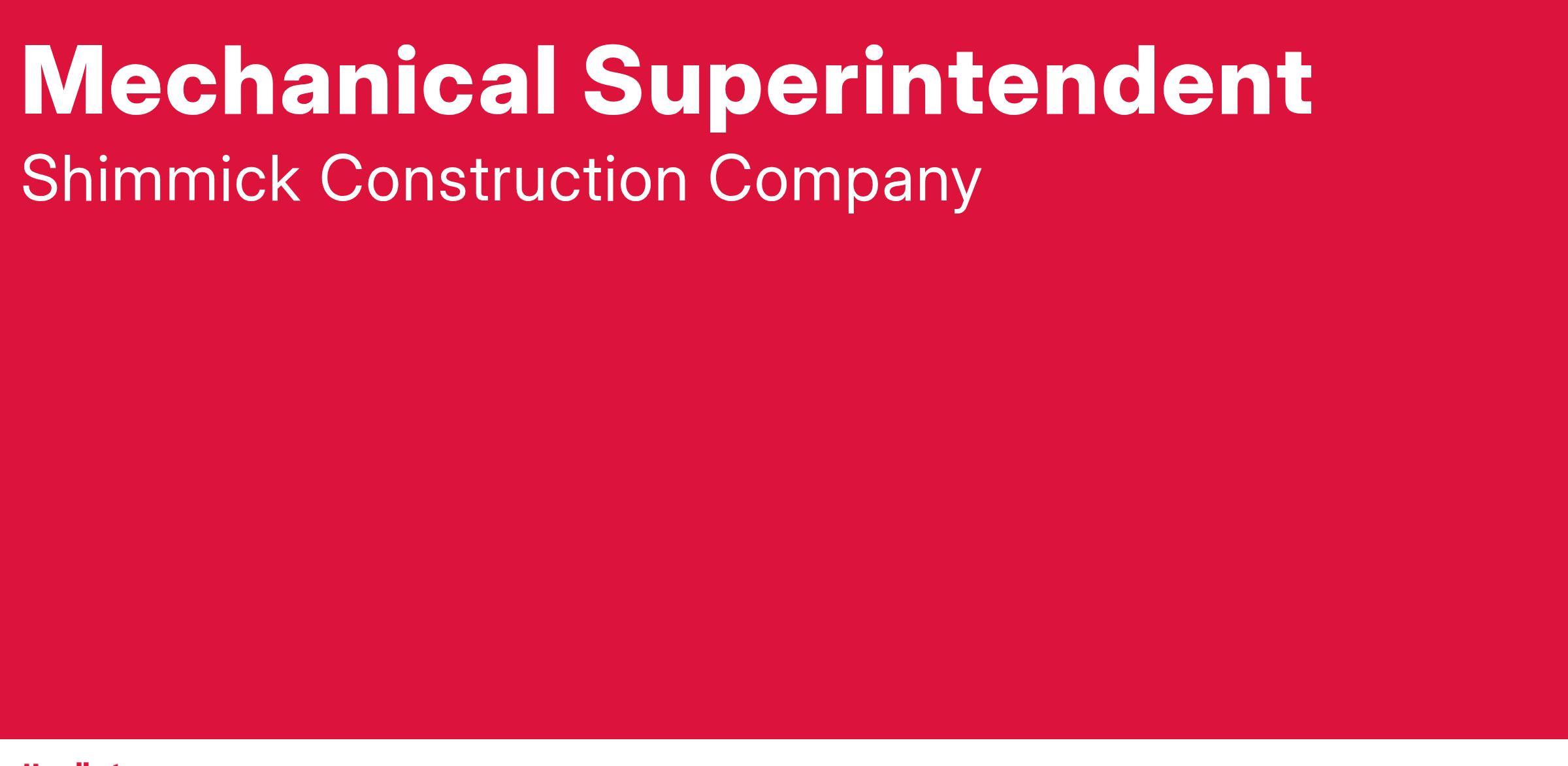Shimmick is seeking a highly talented Mechanical Superintendent based out of Chattanooga, TN. This challenging position will provide an excellent growth opportunity while improving the infrastructure of the city.