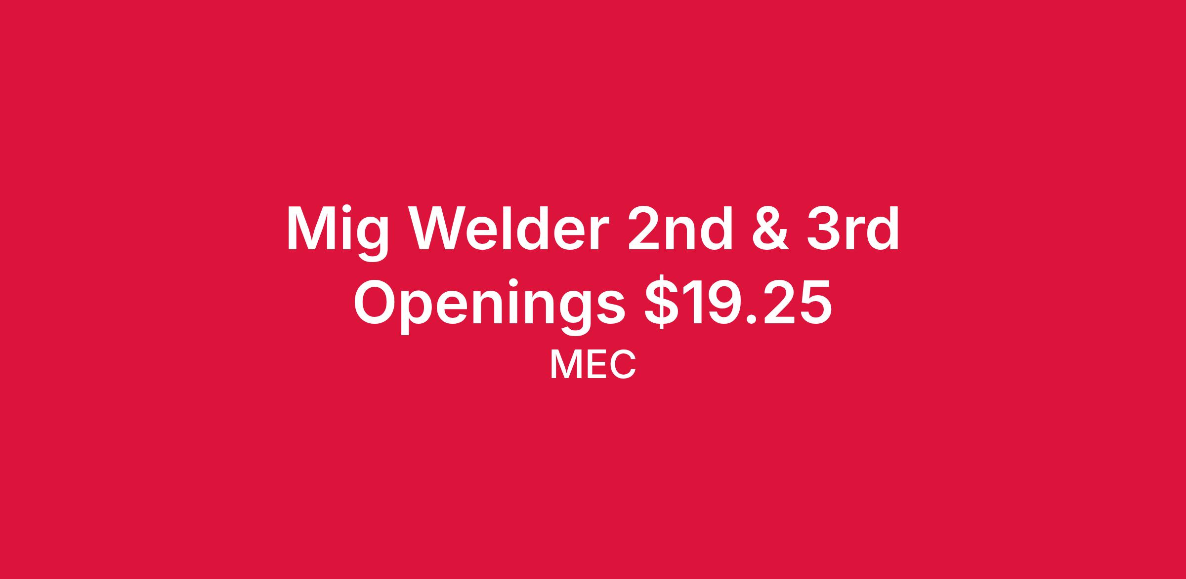 Our growing company is seeking to hire a Welder (Manual/Robotic). As an employee/owner at MEC, you will be responsible for preparing metal for weld operations per customer specifications, drawings, and instructions from engineering. Primary duty is performing welding operations on various customer products using manual and/or robotic welding equipment.