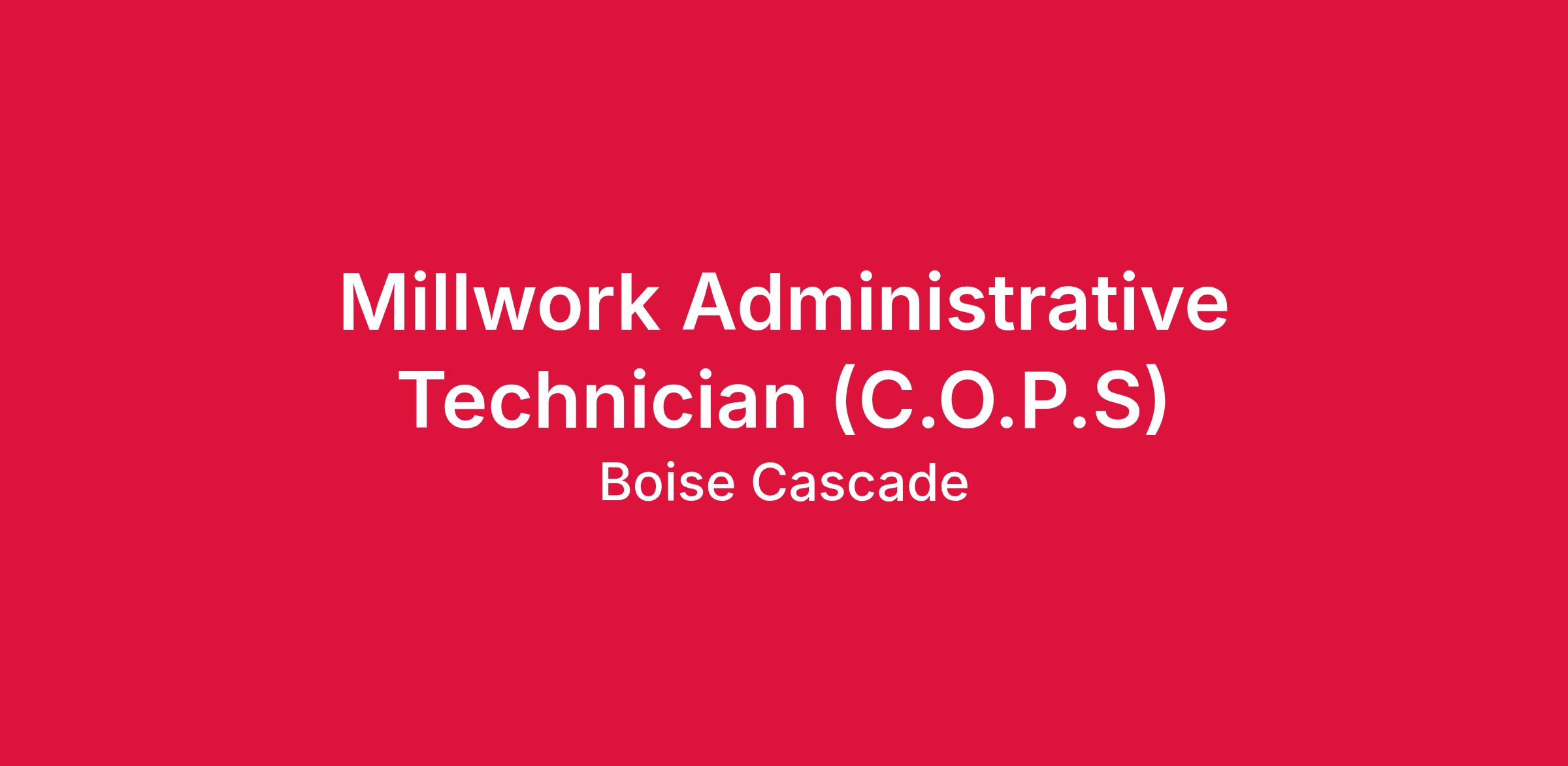 Boise Cascade has an exciting opening for a Millwork Administrative Technician (C.O.P.S) in our shop. Please review the responsibilities and needed qualifications below and apply today!
