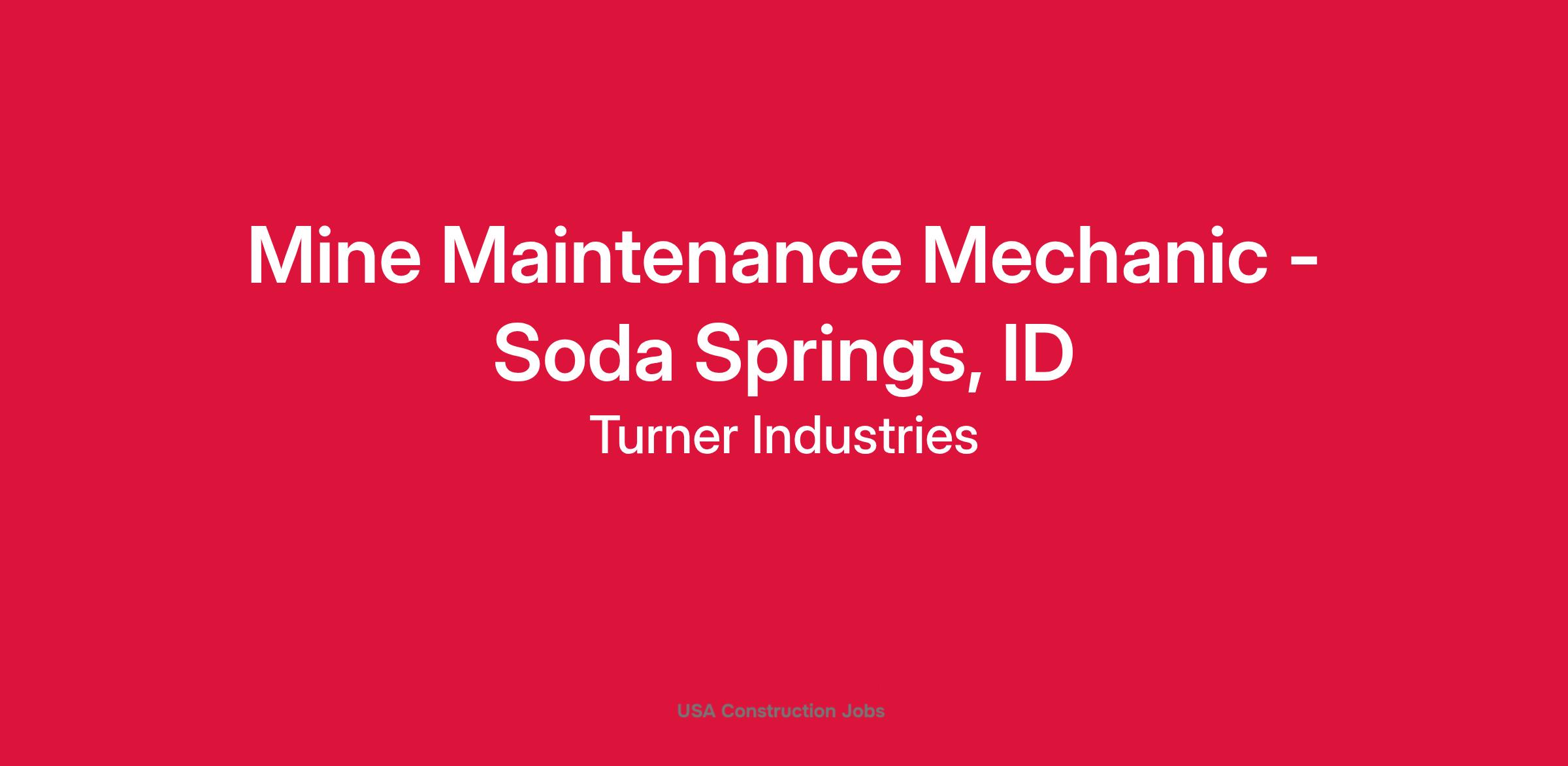 We are seeking a Mine Maintenance Mechanic for a position in Soda Springs, ID. This role lays out, fabricates, assembles, installs and maintains piping and piping systems, fixtures and equipment for steam, hot water, heating, cooling, lubricating, sprinkling and industrial processing systems.