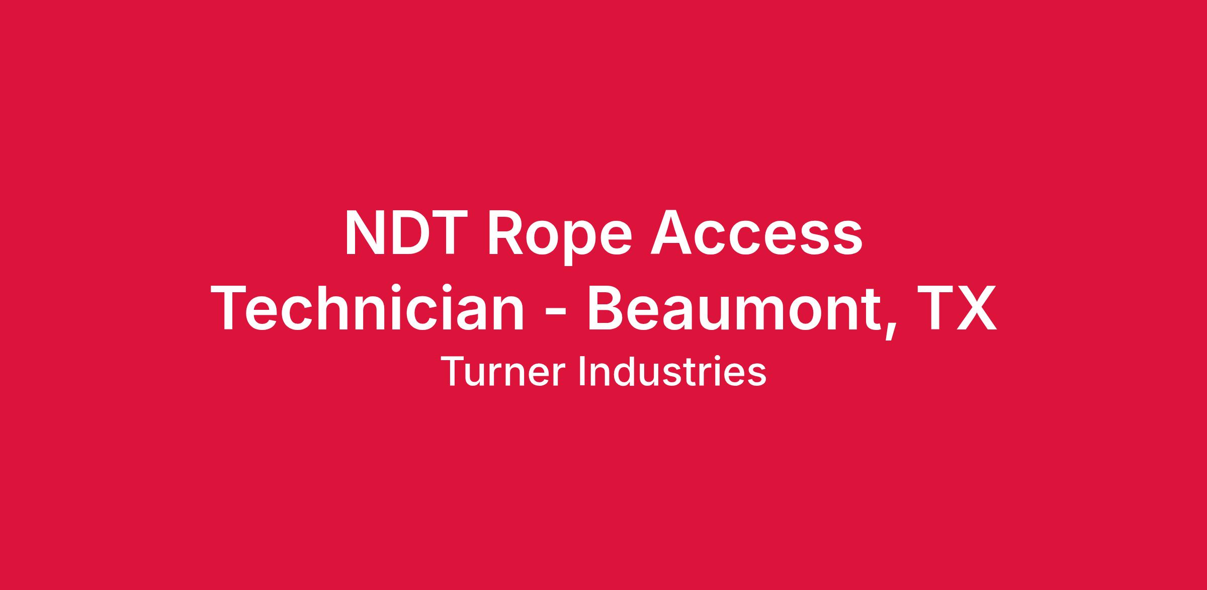 We are seeking a NDE Rope Access Technician for a position in Beaumont, TX. Performs nondestructive inspection of material, parts, components, and/or pressurized systems; interprets data from tests; maintains equipment; and supervises NDE activities in accordance to referencing code. Non-exempt role; Reports to Area Manager; Develops procedures for performance of variety of duties / performs complex duties within established guidelines.