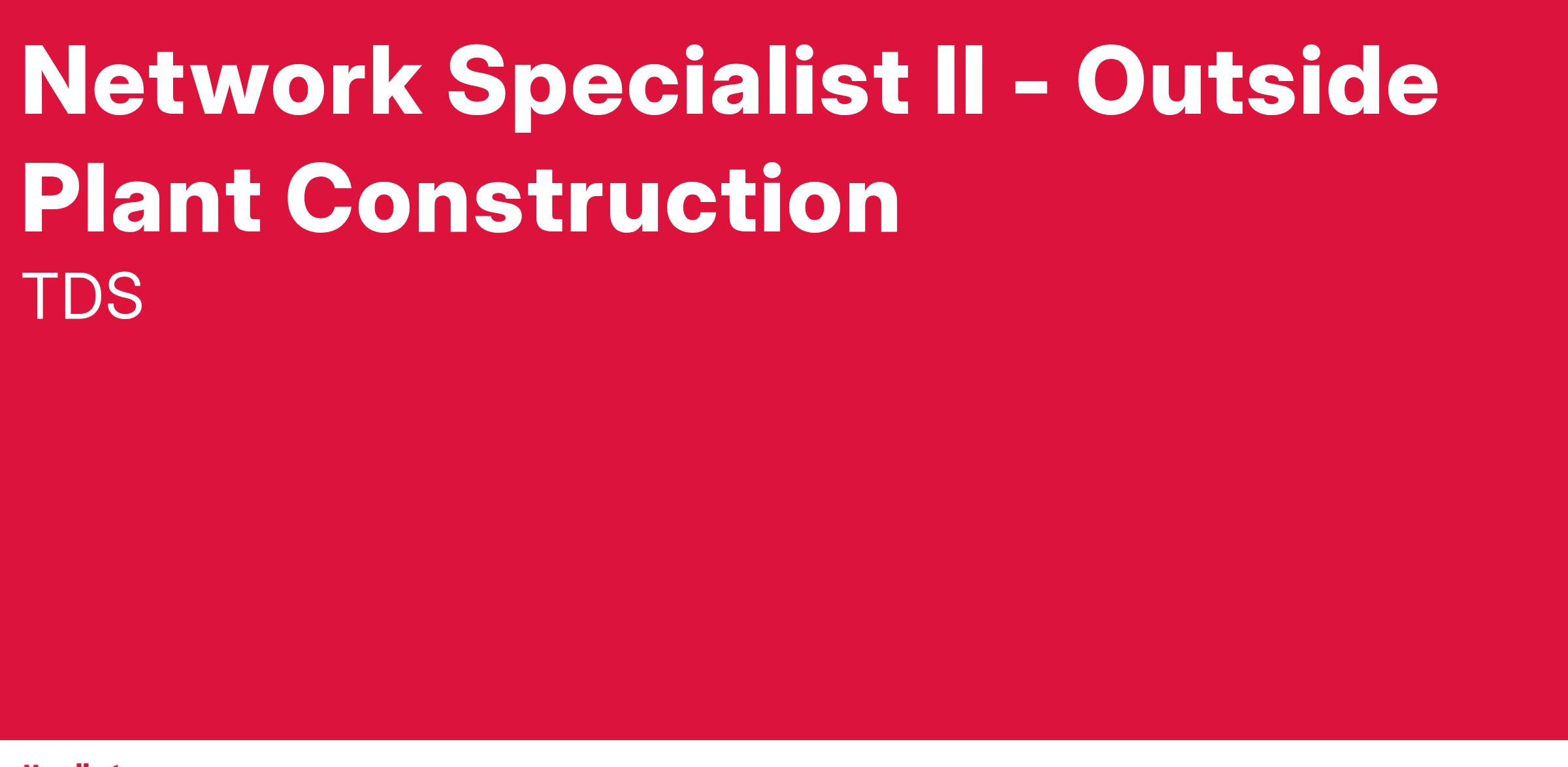 In the Network Specialist - Outside Plant Construction role, you will provide outside plant project support for a geographic area, along with analytical preparation of records, statistics and reports relating to OSP functions. This will also include, but not be limited to, support for outside plant engineering (OSPE) and/or construction (OSPC) efforts. You are responsible for coordinating, planning, and supervising outside plant field construction and splicing operations in multiple locations. Depending upon workload you may be required to supervise consulting resources in the engineering and/or construction phase of the projects. You are expected to work independently with representatives from network operations, associate managers, consultants, design engineers and construction contractors for TDS Telecom Network Services to ensure that the needs of the company are being met. You will be responsible for the implementation of fiber networks while conforming to existing TDS Outside Plant (OSP) guidelines and TDS OSP standards established for the Telecom Network Services. You are also expected to stay current with National Electrical Safety Code (NESC) and ensure our construction is always in compliance with NESC standards. Depending on the area, you may be required to assist in the engineering of the OSP projects. This involves, among other things, creating the labor, material, and overhead project estimates.