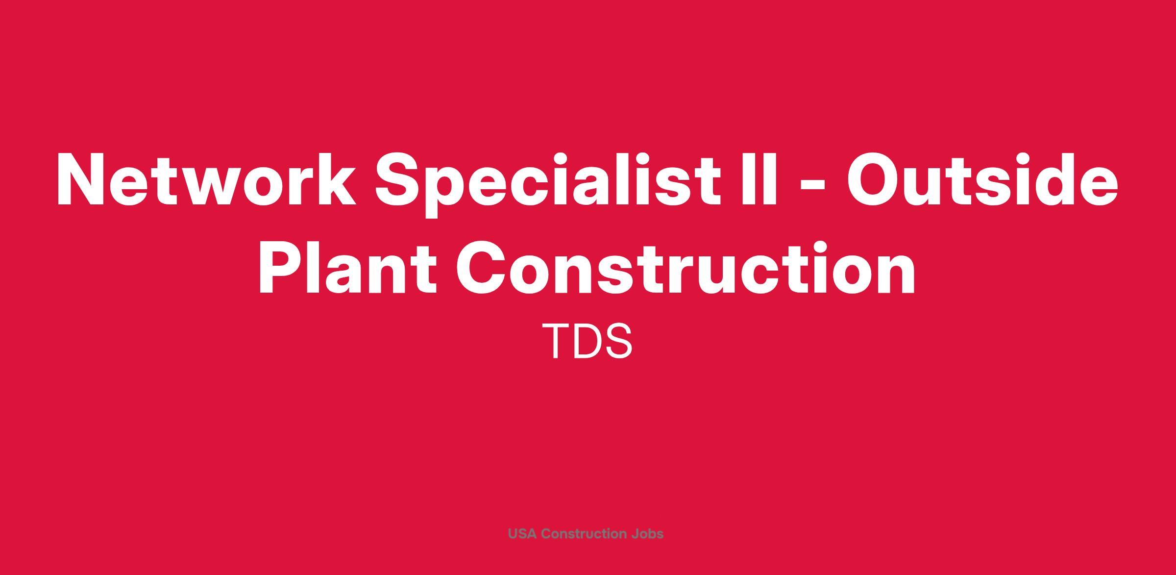 The Network Specialist II - Outside Plant Construction is expected to oversee numerous construction projects, possibly located in multiple locations. The successful candidate will continually monitor costs and job progress to ensure that construction projects are completed on time and within budget. The successful candidate is also responsible for ongoing communication with various governmental agencies to protect the TDS OSP network from being jeopardized by proposed road improvements and may be required to negotiate with municipalities or other utility companies from a network and a legal perspective for the purchase, lease and/or sale of inner ducts, fiber and/or complete fiber networks.