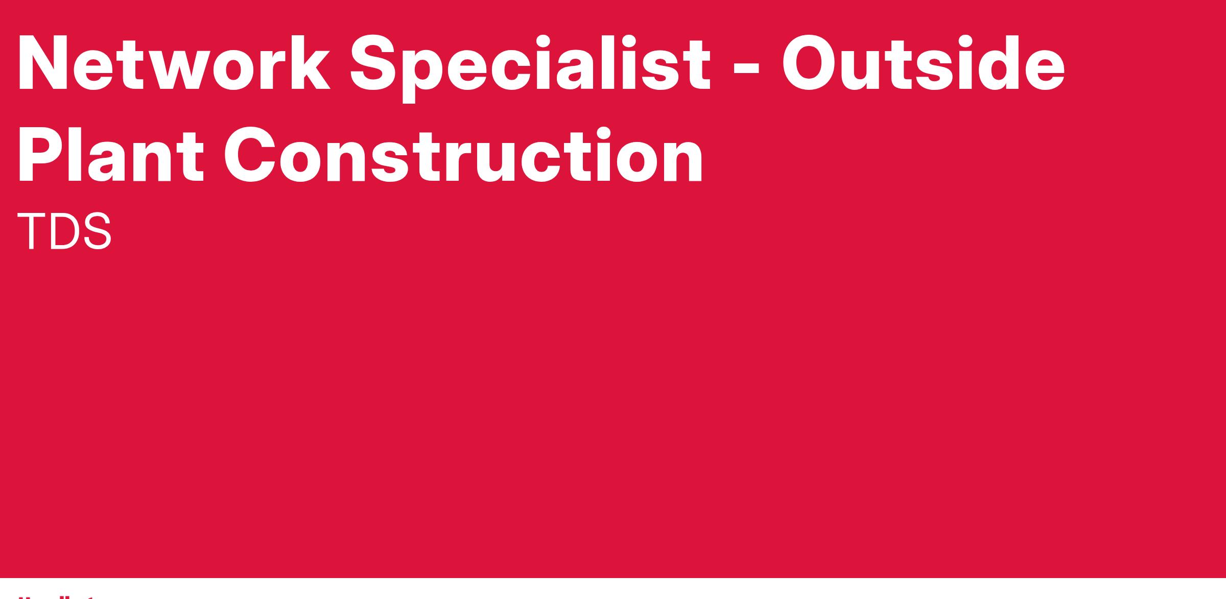 In the Network Specialist - Outside Plant Construction role, you will provide outside plant project support for a geographic area, along with analytical preparation of records, statistics and reports relating to OSP functions. This will also include, but not be limited to, support for outside plant engineering (OSPE) and/or construction (OSPC) efforts.  You are responsible for coordinating, planning, and supervising outside plant field construction and splicing operations in multiple locations. Depending upon workload you may be required to supervise consulting resources in the engineering and/or construction phase of the projects. You are expected to work independently with representatives from network operations, associate managers, consultants, design engineers and construction contractors for TDS Telecom Network Services to ensure that the needs of the company are being met. You will be responsible for the implementation of fiber networks while conforming to existing TDS Outside Plant (OSP) guidelines and TDS OSP standards established for the Telecom Network Services. You are also expected to stay current with National Electrical Safety Code (NESC) and ensure our construction is always in compliance with NESC standards. Depending on the area, you may be required to assist in the engineering of the OSP projects. This involves, among other things, creating the labor, material, and overhead project estimates.