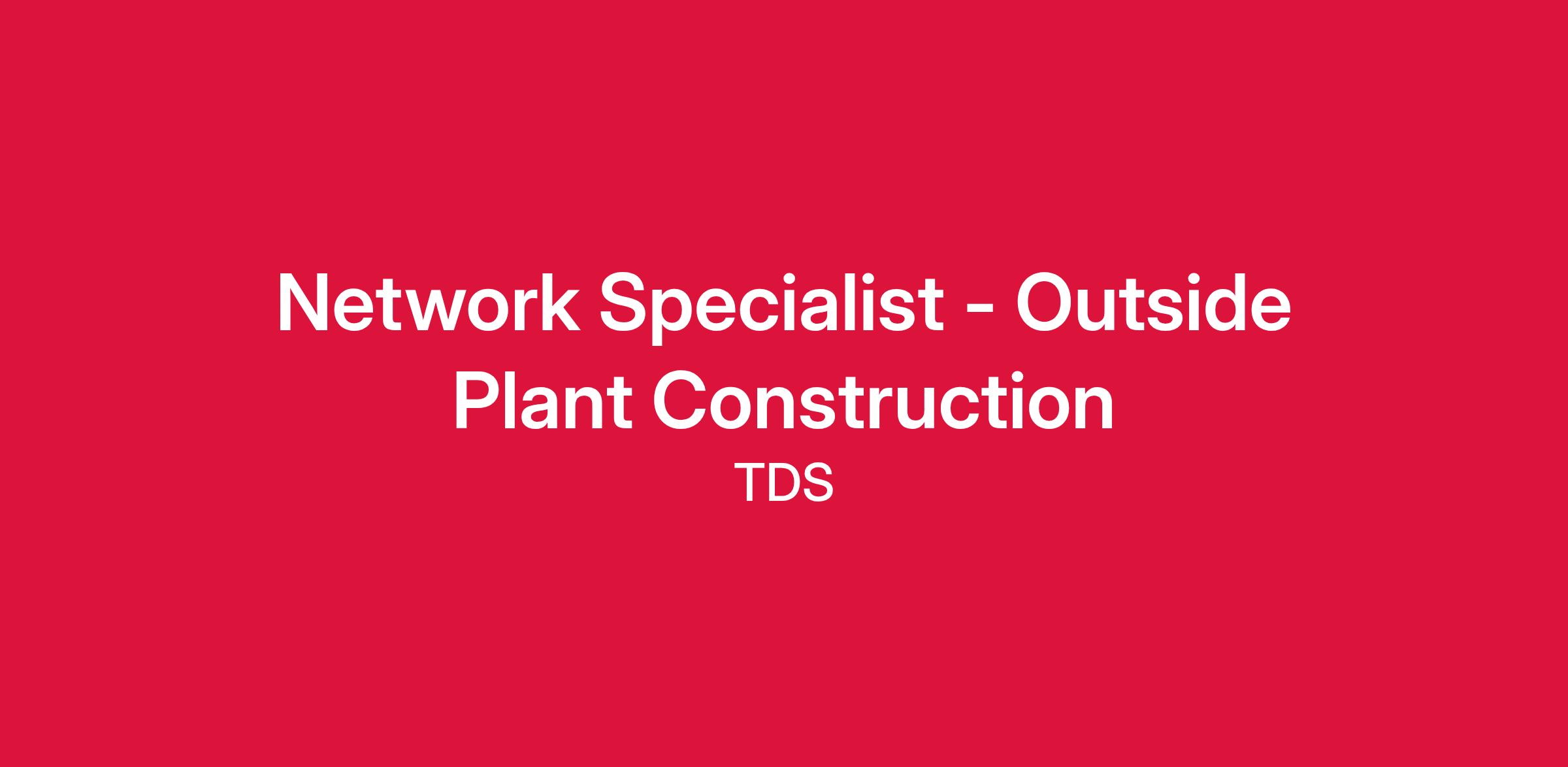 As a Network Specialist - Outside Plant Construction, you will be responsible for coordinating, planning, and supervising outside plant field construction and splicing operations in multiple locations. Depending upon workload, you may be required to supervise consulting resources in the engineering and/or construction phase of the projects. The successful candidate is expected to work independently with representatives from network operations, associate managers, consultants, design engineers and construction contractors for TDS Telecom Network Services to ensure that the needs of the company are being met. The successful candidate will be responsible for the implementation of fiber networks while conforming to existing TDS Outside Plant (OSP) guidelines and TDS OSP standards established for the Telecom Network Services. The successful candidate is expected to stay current with National Electrical Safety Code (NESC) and ensure our construction is always in compliance with NESC standards. Depending on the area, the Network Specialist I - Outside Plant Construction may be required to assist in the engineering of the OSP projects. This involves, among other things, creating the labor, material, and overhead project estimates.
