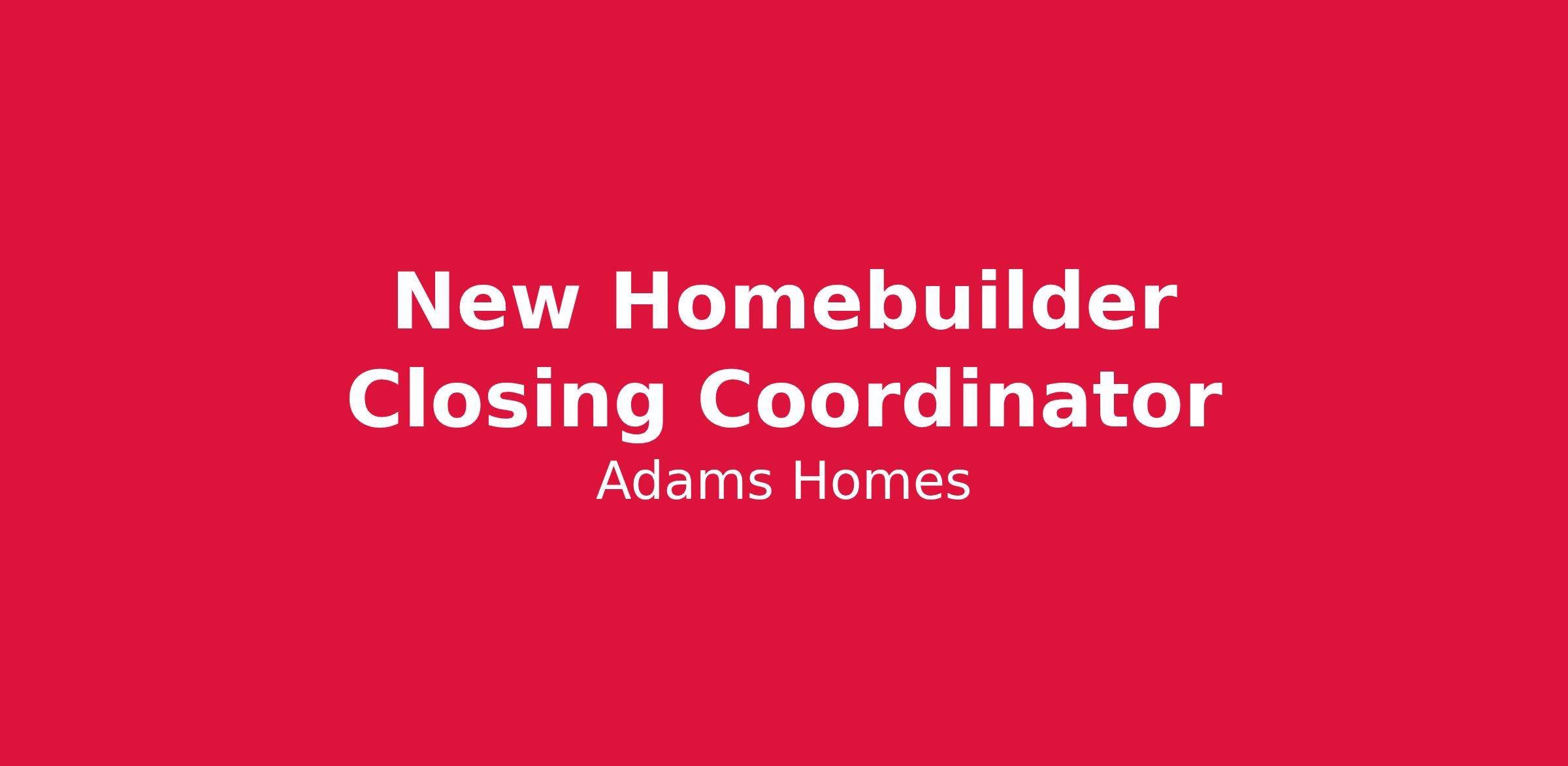New Homebuilder Closing Coordinator