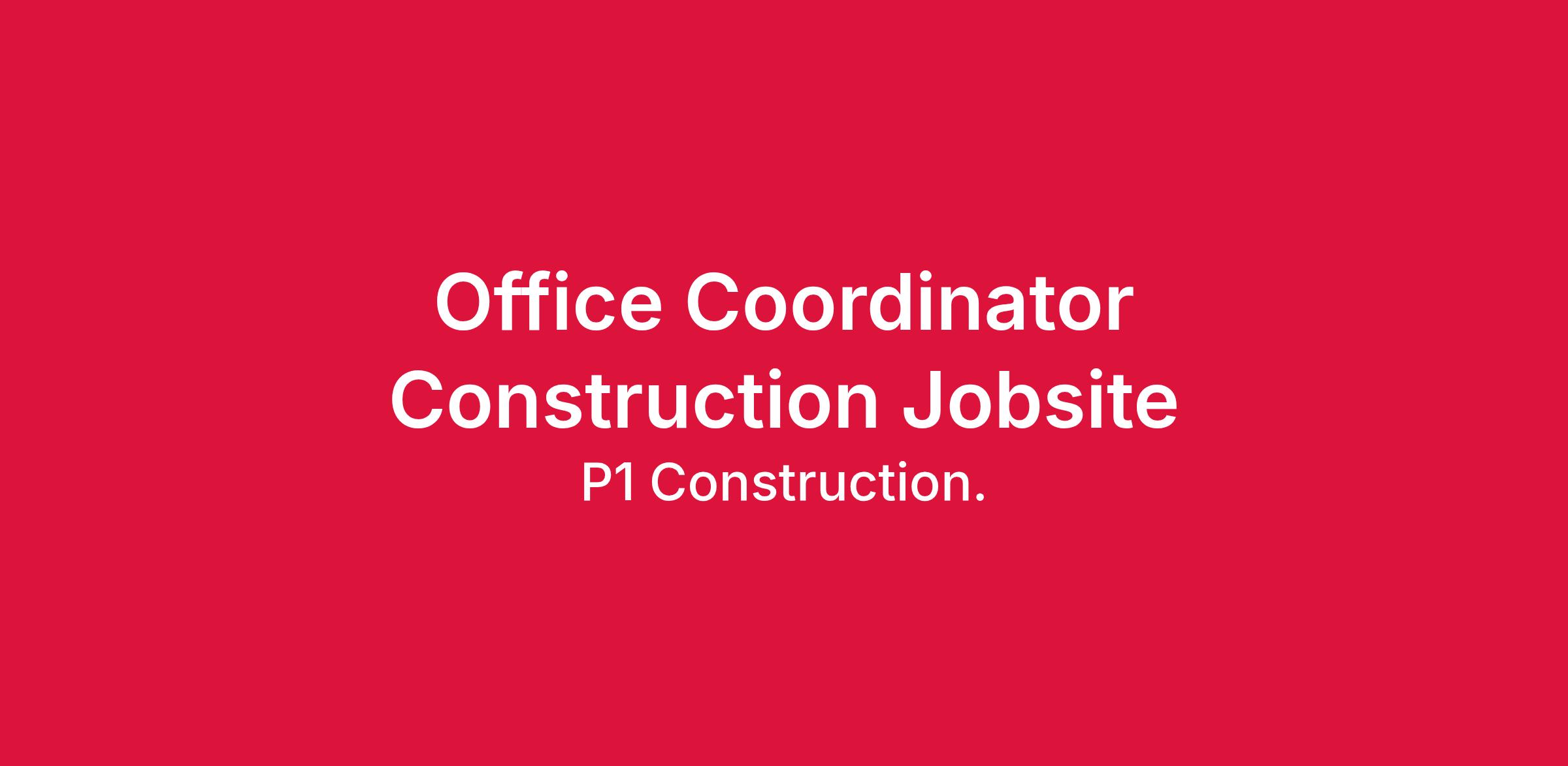 P1 Construction, LLC. is seeking an Office Coordinator to work onsite at a large construction jobsite in the Muskogee, Oklahoma area.