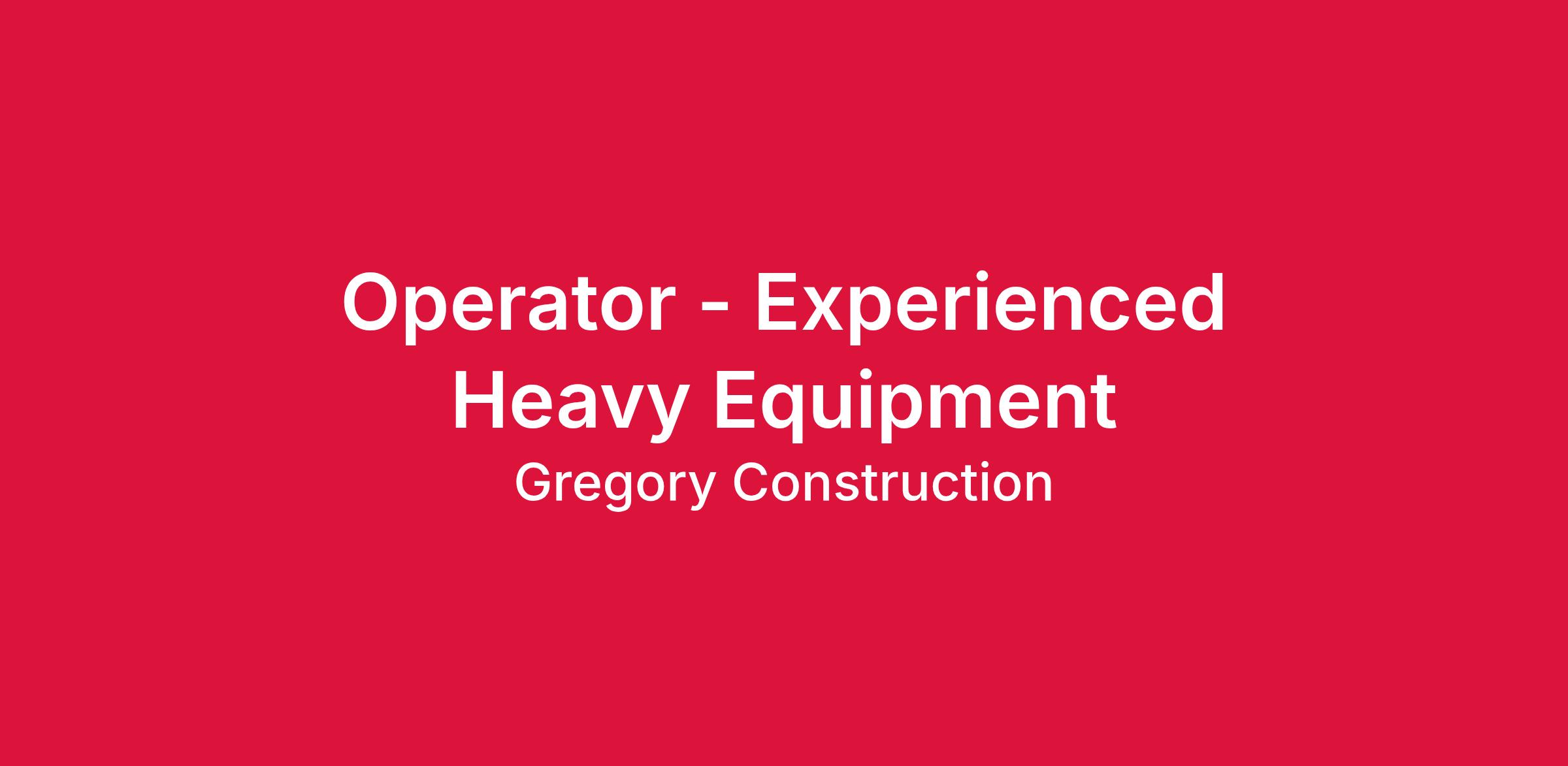 5 year (Required) verifiable experience in equipment operations
