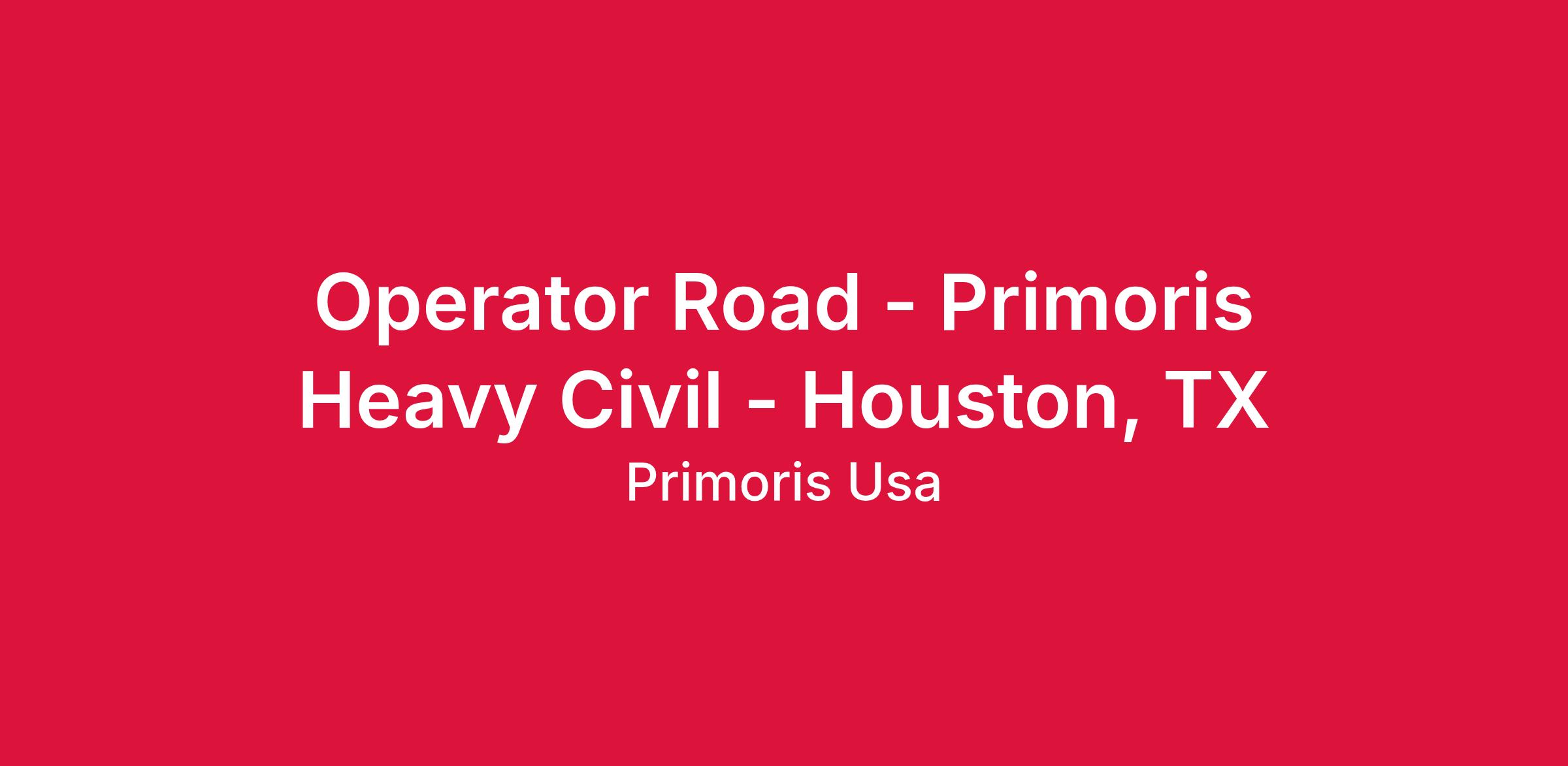 Primoris Heavy Civil is looking for experienced Equipment Operators to support our growing operations in the Houston, TX area. This is your opportunity to work on meaningful infrastructure projects with a company that values safety, skill, and teamwork.